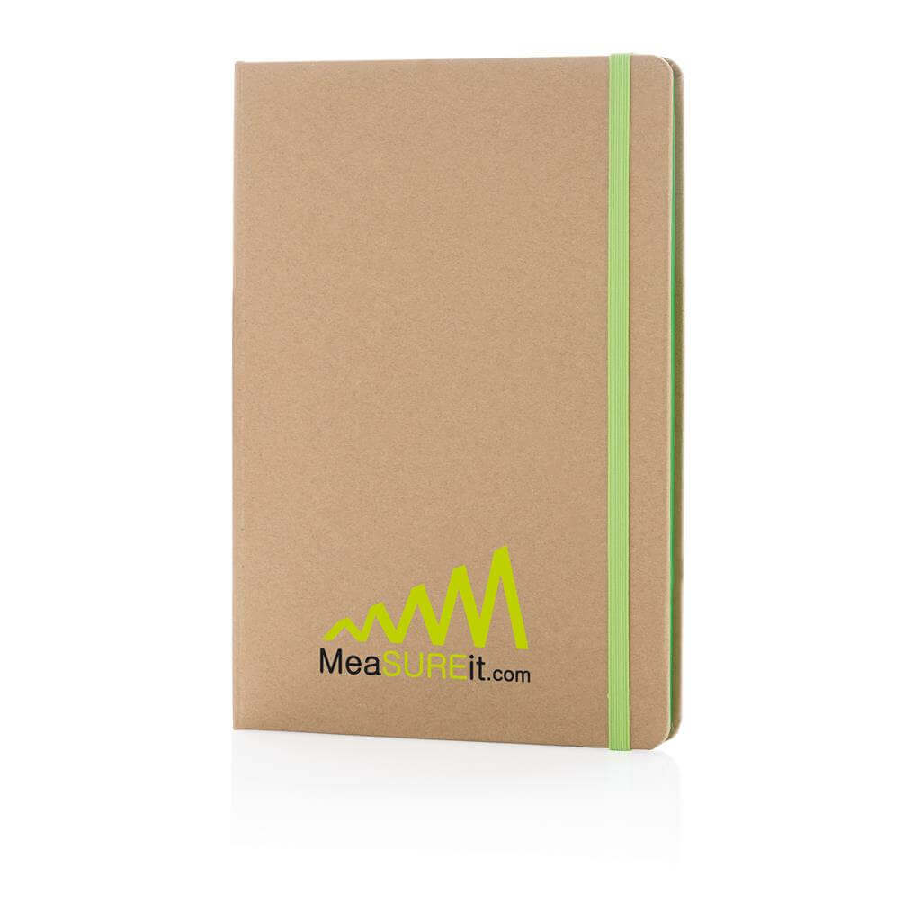 Ekologický poznámkový blok s obalom z hrubého papiera a listy z recyklovaného papiera. 72 listov / 144 strán papiera s gramážou 70 g / m2. Krémový odtieň listov. So záložkou a uzatváraním na gumičku v rovnakom farebnom prevedení.