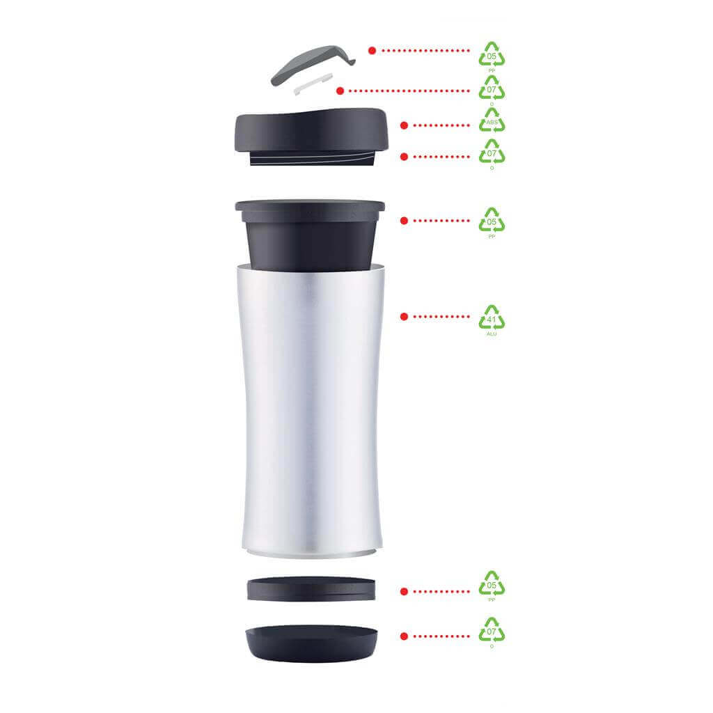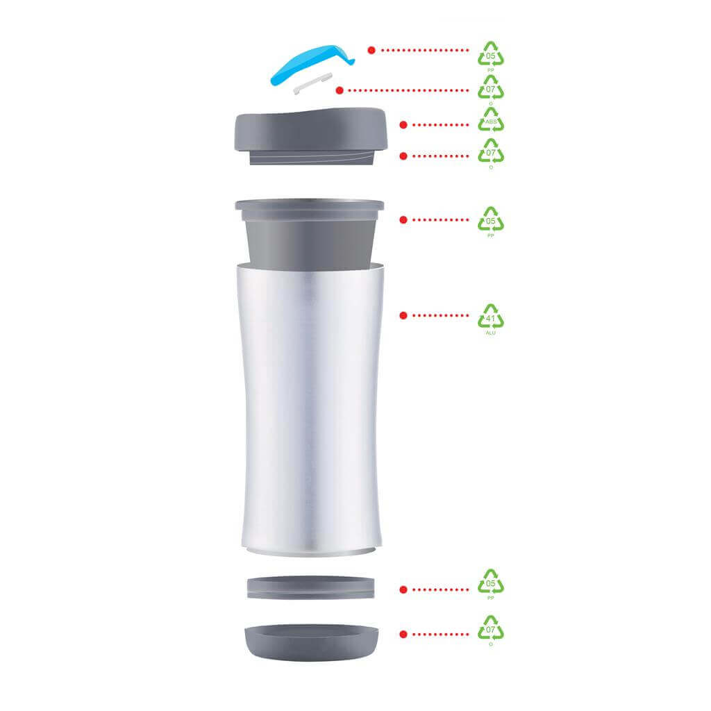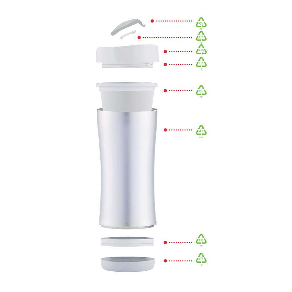 Boom je nepriepustný cestovný hrnček s objemom 225 ml s dvojitou stenou pre horúce aj studené nápoje na cestách. Na konci životnosti ho možno úplne rozobrať a recyklovať. Ochranný vzor®.