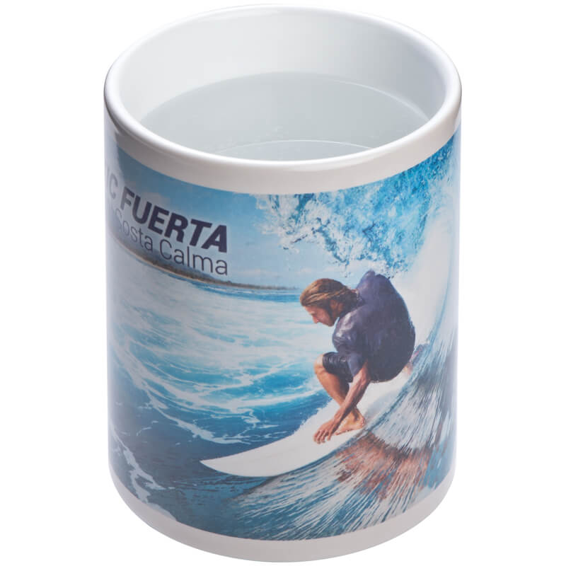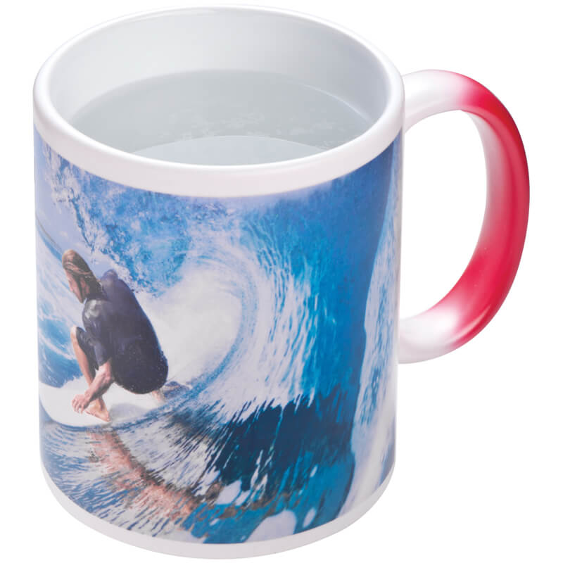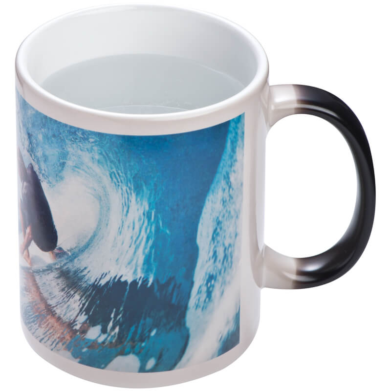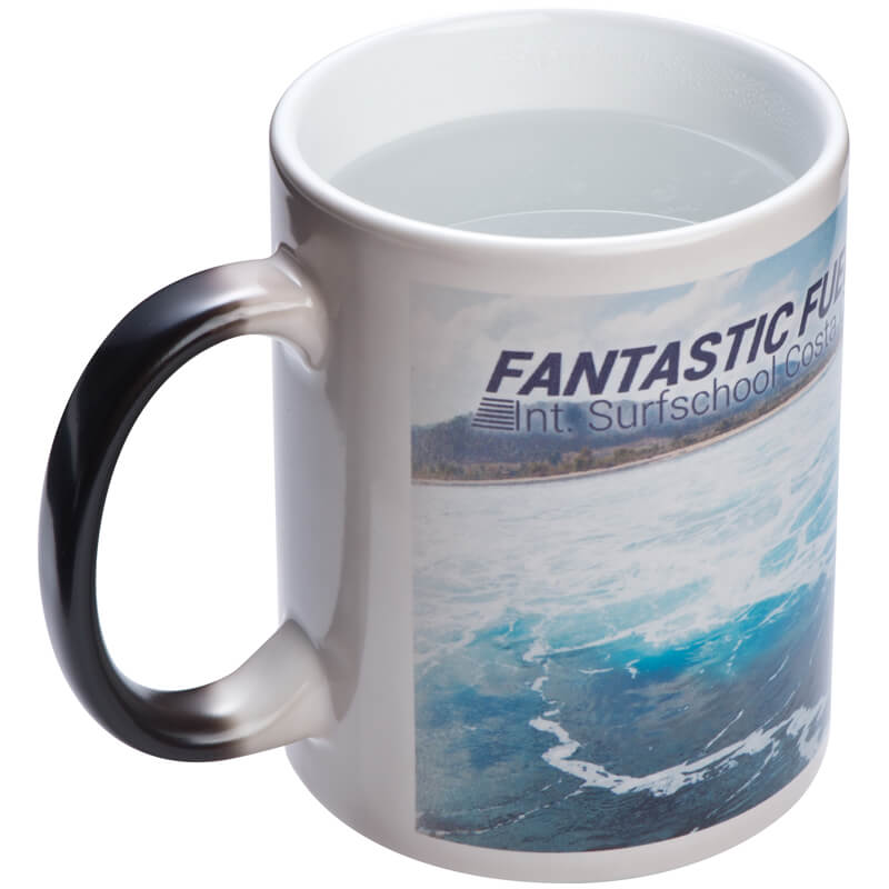 Efektívny sublimačný hrnček: Za studena odtlačok je viditeľný čiastočne pod farebným lakovaním. Akonáhle nalejete horúcu tekutinu, zobrazí sa farebný odtlačok. Odporúčame sublimáciu. Cena vrátane potlače. Minimálne množstvo: 25 ks