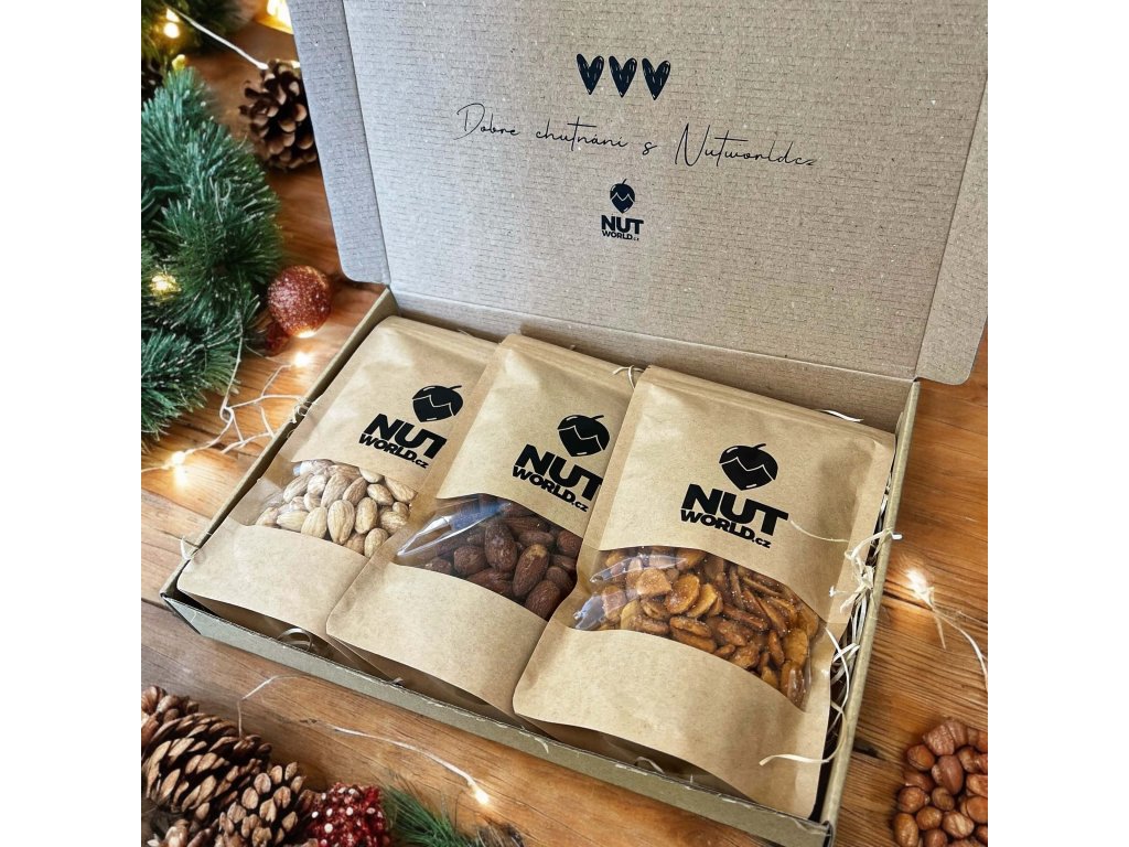 V jednoduchosti je krása. Táto darčeková krabička ukrýva tri sáčky po 200 g, ktoré si vyskladáte presne podľa seba – od prémiových orechov cez sušené ovocie až po orechy v čokoláde či ďalšie dobroty. Vybrať si môžete priehľadnú alebo nepriehľadnú verziu, dozdobiť ju stuhou alebo jutovým povrázkom a doplniť logom, etiketou či kartičkou s odkazom. Každý balíček pripravujeme čerstvo a skladáme tak, aby vyzeral uhladene aj reprezentatívne. Výsledkom je praktický a chutný dar, ktorý zapasuje na Vianoce, výročia spolupráce, onboarding aj poďakovanie tímu či klientom. Napíšte nám svoje preferencie a rozpočet – odporučíme chuťové kombinácie, nastavíme gramáže a pripravíme branding, ktorý vystihne váš štýl. Darček, ktorý chutí, vyzerá a reprezentuje. Cena za mandle solené, mix orechov v mede a soli, mandle v karamele s vanilkou 20,86 €