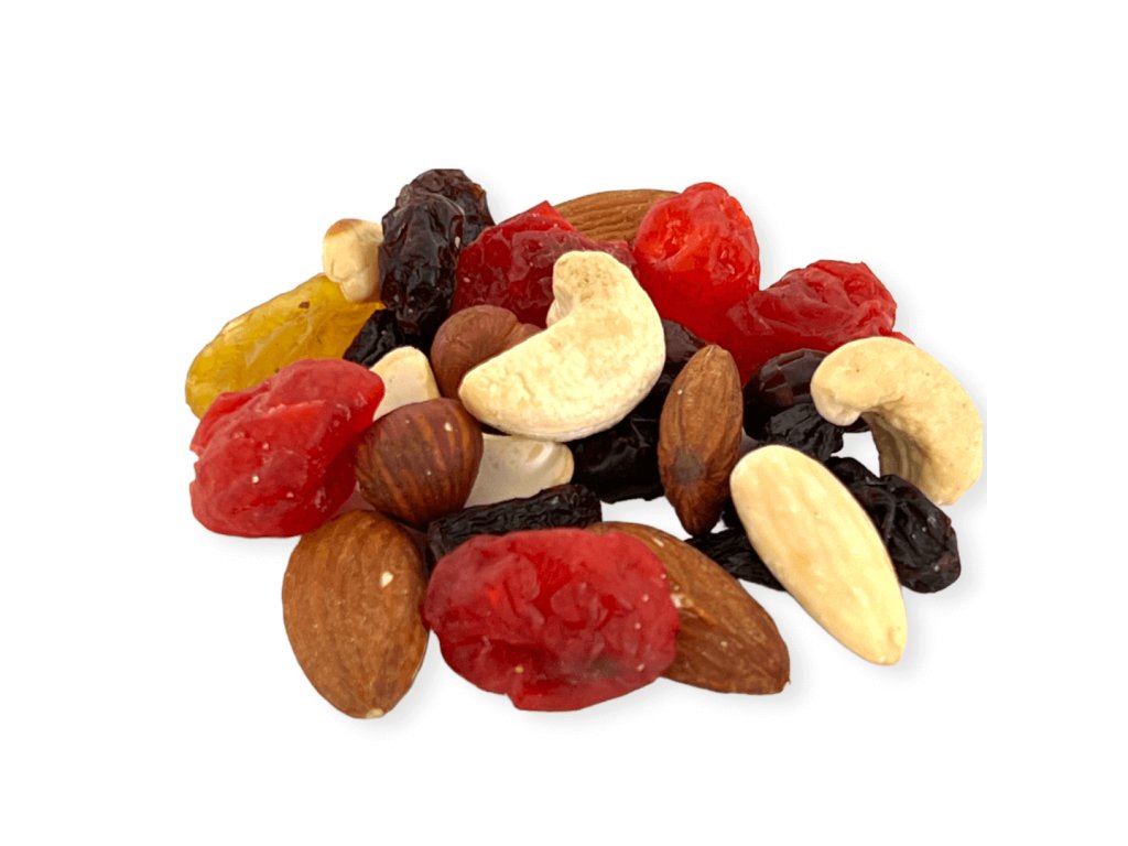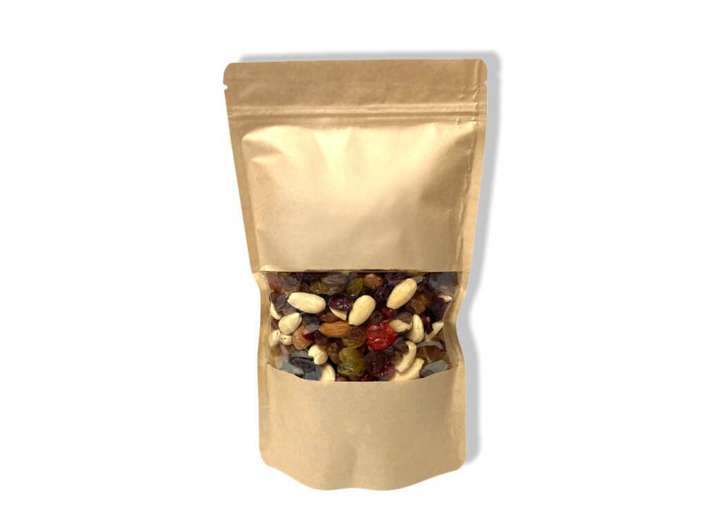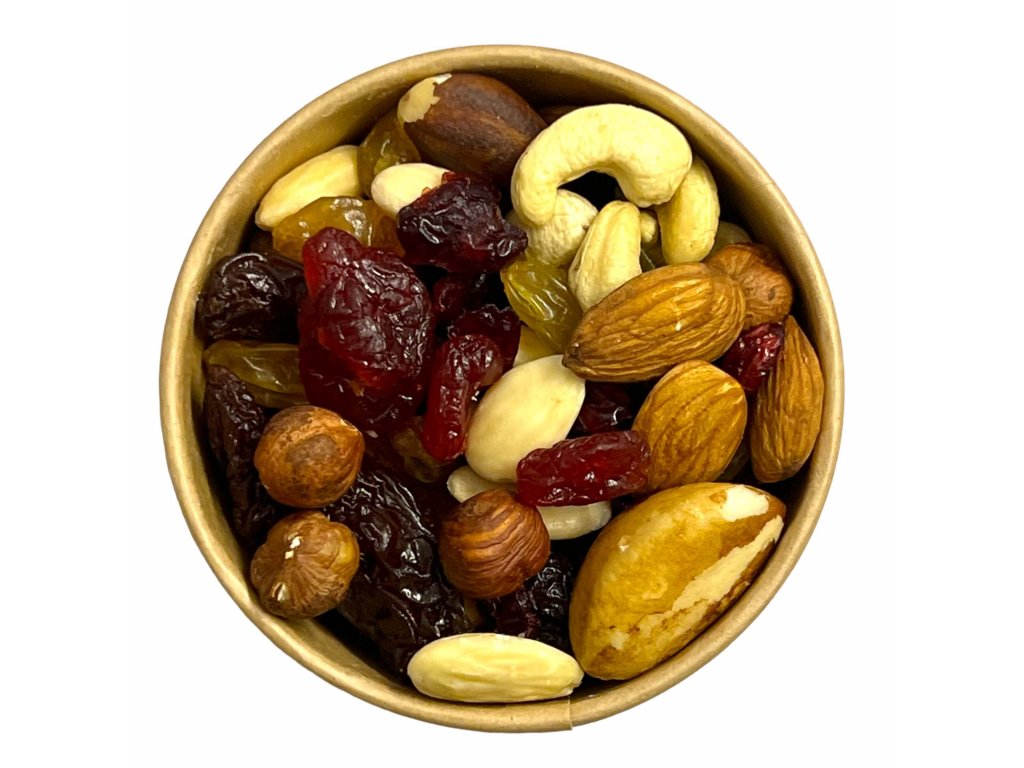 Zloženie: BRUSNICE sušené nesírené (USA) - Brusnice 66%, trstinový cukor 33,5%, slnečnicový olej 0,5%. ROZINKY jumbo (Chille) - Hrozienka 99,5%, slnečnicový olej 0,5%. ČEREŠNE sušené (Čína) - Vykôstkované čerešne 64,94%, cukor 35%, farbivo E129, kyselina citrónová E330, konzervant E220: OXID SIRIČITÝ, chlorid vápenatý E509. ROZINKY zlaté jumbo (Chille) - Hrozienka 99,5%, slnečnicový olej 0,5%, konzervant E220: OXID SIRIČITÝ. PARA orechy (Bolívia) - PARA orechy jadra 100%. MANDLE natural nonpareil výber (USA) - MANDLE natural JUMBO 100%. MANDLE lúpané JUMBO (USA) - MANDLE lúpané 100%. LIESKOVÉ oriešky - jadrá (Gruzie) - 100% LIESKOVÉ orechy. KEŠU natural ww320 (Afrika) - KEŠU orechy ww320 100%.