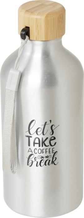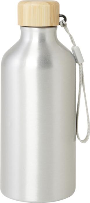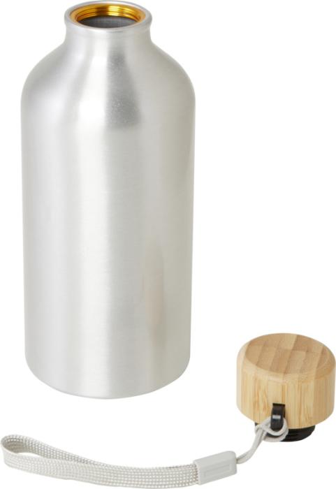 Fľaša na vodu z recyklovaného hliníka s certifikáciou RCS so štýlovým bambusovým viečkom. Táto ľahká jednostenná fľaša je dodávaná s popruhom pre ľahké prenášanie. Bambus pochádza z udržateľných, ekologicky a sociálne zodpovedných zdrojov. Objem je 500 ml. Neodporúčame umývať v umývačke.