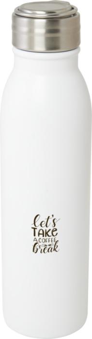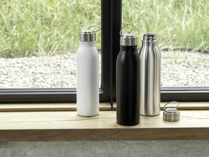 Jednostenná fľaša na vodu z nerezovej ocele s certifikáciou RCS so skrutkovacím viečkom odolným proti rozliatiu a odolným pútkom na prenášanie zo zliatiny zinku. Bez BPA, testované a schválené podľa nemeckej legislatívy o bezpečnosti potravín (LFGB). Testované a schválené na obsah ftalátov podľa predpisov REACH. Hodí sa pre väčšinu štandardných auto držiakov. Objem je 700 ml. Neodporúča sa umývať v umývačke. Dodáva sa v darčekovej krabičke z recyklovanej lepenky.