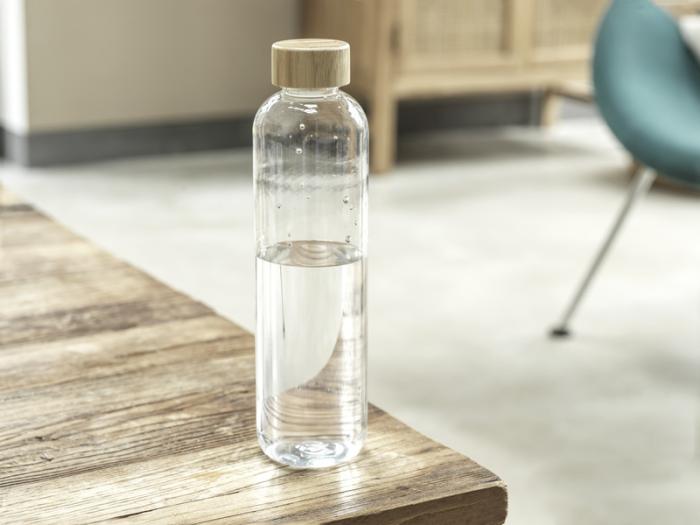 Opakovane použiteľná fľaša na vodu vyrobená z recyklovaného plastu so štýlovým bambusovým viečkom. Jednostenná fľaša je bez BPA, testovaná a schválená podľa nemeckej legislatívy o bezpečnosti potravín (LFGB). Testované a schválené na obsah ftalátov podľa predpisov REACH. Bambus pochádza z udržateľných, ekologicky a sociálne zodpovedných zdrojov. Objem je 950 ml. Neodporúča sa umývať v umývačke. Dodáva sa v darčekovej krabičke z recyklovanej lepenky.