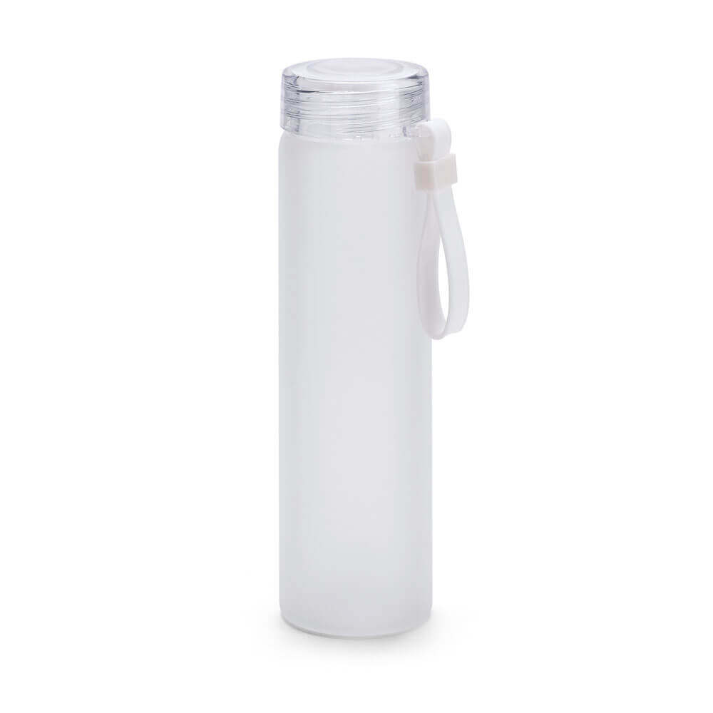 Borosilikátová sklenená fľaša so skrutkovacím uzáverom z PP. Fľaša má matný povrch a silikónovou rukoväť. Fľaša má objem až 470 ml a je dodávaná v krabici. ø60 x 210 mm