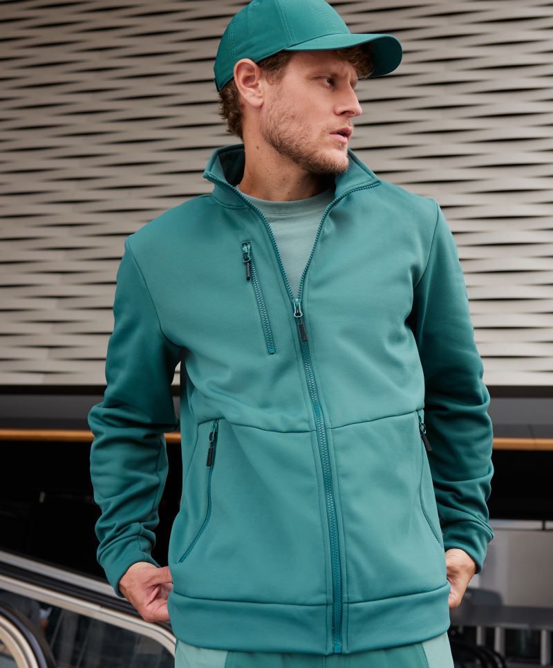 Našité elastické manžety na rukávoch av páse, YKK zipsy, 2 bočné vrecká a 1 náprsné vrecko so zipsom, fleece vo vnútri, hladká vonkajšia strana pre ľahké zušľachtenie, mäkký pružný materiál, prateľné na 40 °, nemožno žehliť, nemožno sušiť v sušičke.