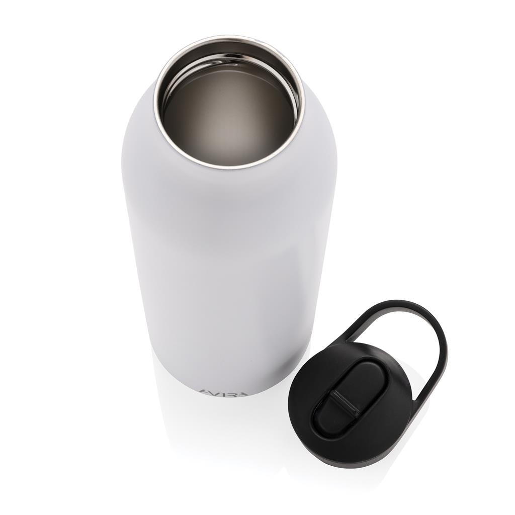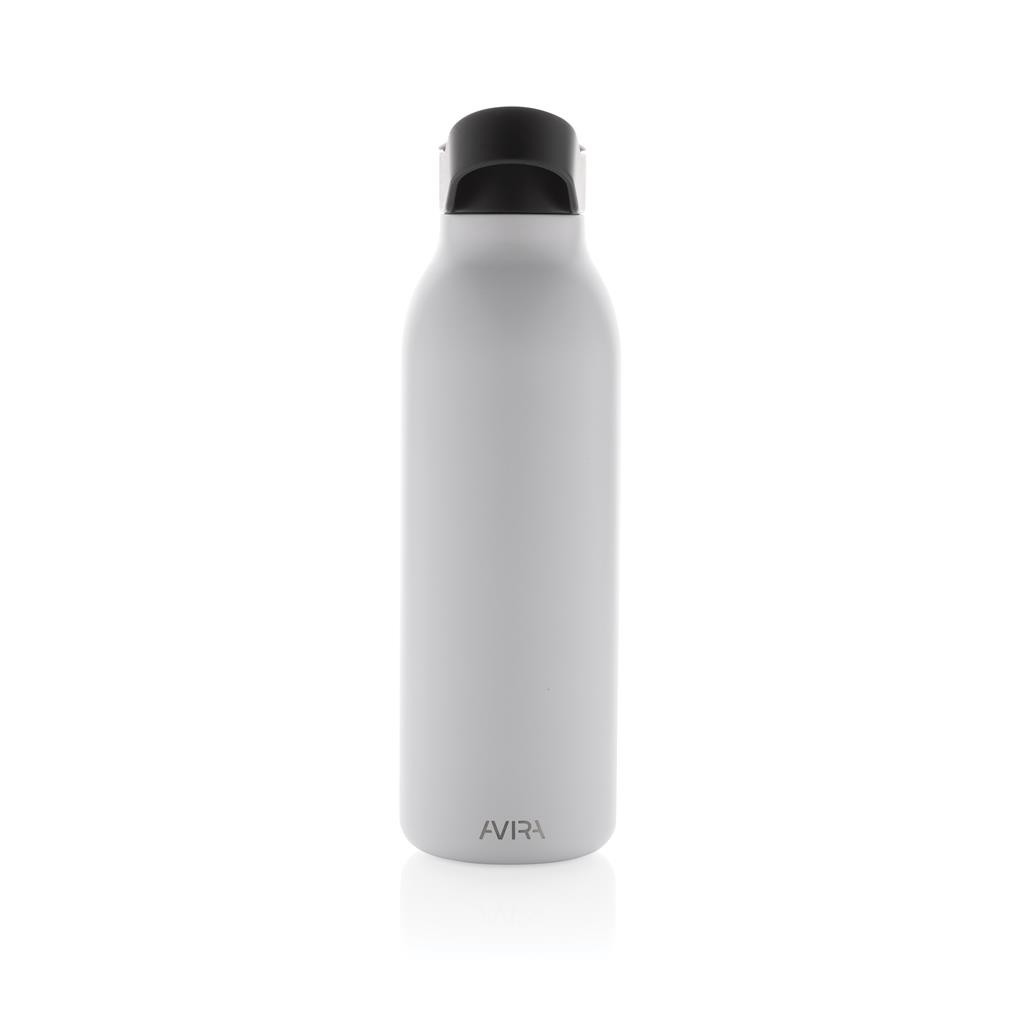 Fľaša na vodu Avira Ara je vďaka inovatívnemu fliptop uzáveru a slamke ideálna pre rôznorodé športové aktivity. Dvojitá stena z nehrdzavejúcej ocele uchová nápoje až 20 hodín studenej. Ideálna veľkosť pasuje do väčšiny držiakov nápojov v automobiloch. Vyrobené z RCS recyklovaných materiálov. RCS (Recycled Claim Standard) je globálny štandard, ktorý umožňuje overiť použitie recyklovaného materiálu v produkte naprieč celým dodávateľským reťazcom. Celkový podiel recyklátu podľa váhy produktu: 96 %. Objem: 500 ml. Bez BPA. Balené v FSC® kraftovej darčekovej krabičke, ktorú je možné po vybalení zložiť a využiť ako držiak na telefón, perá alebo ako kvetináč.