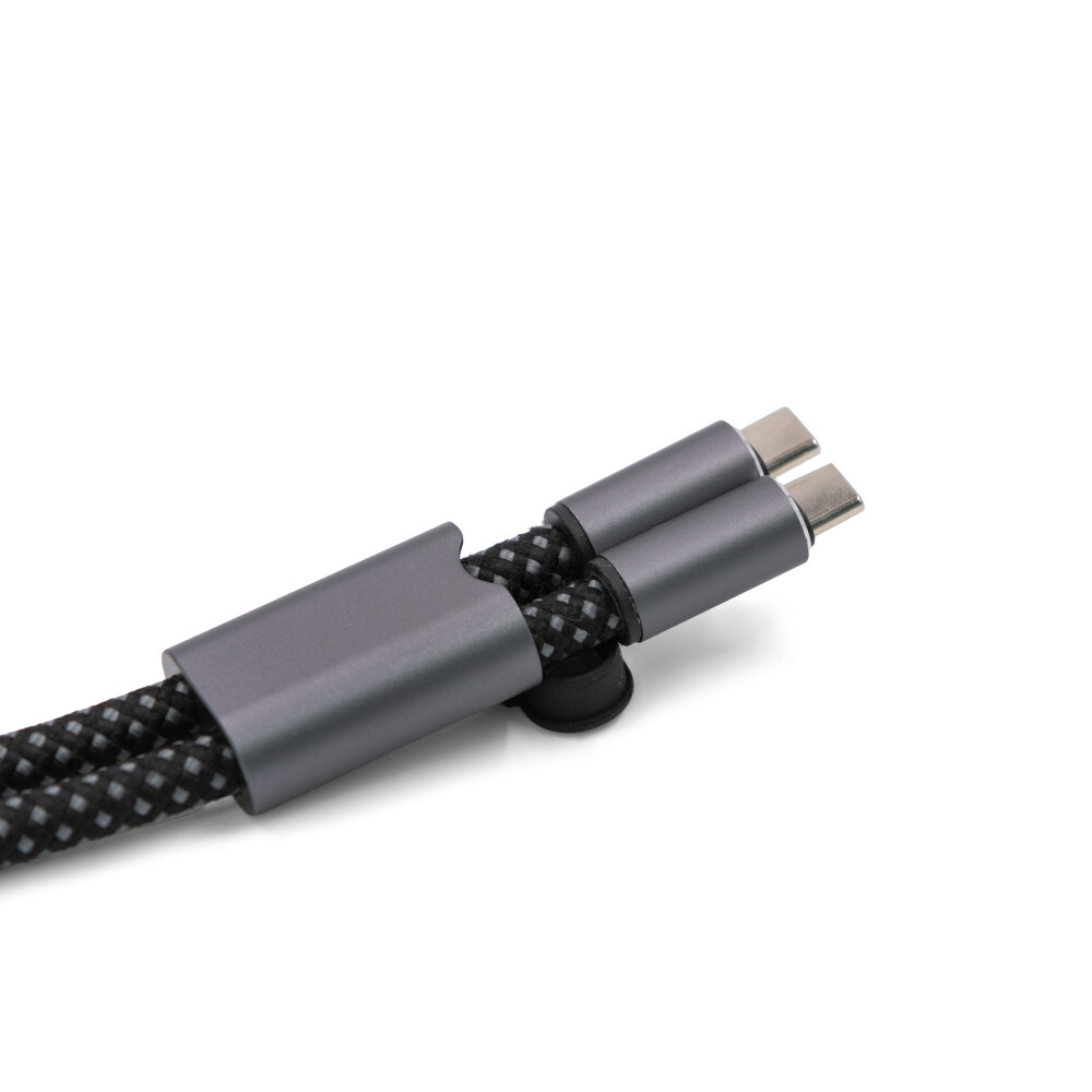 Kábel obsahuje vstup s koncovkou Typ-C a výstup USB Typ-C, podporuje napájanie až 60 W pre rýchle nabíjanie a prenos dát. Rozmery: 44 × 0,7 × 44 cm.