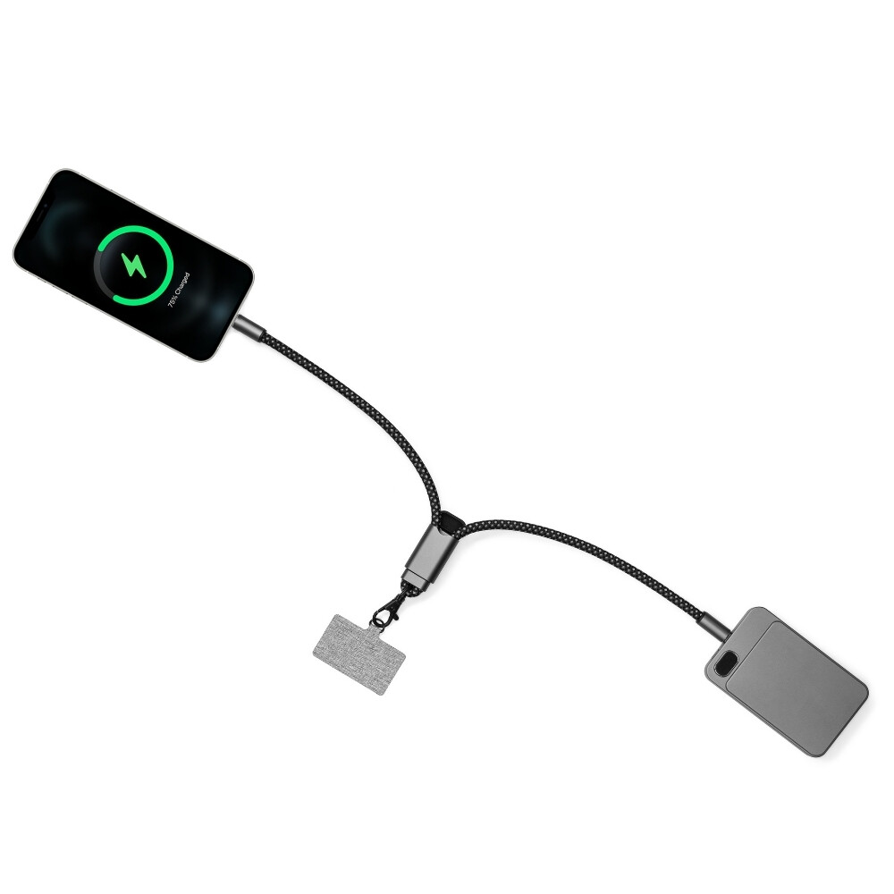 Nylonová šnúrka BrandCharger na zápästie s držiakom na telefón a funkciou dobíjacieho kábla. Vyrobená z recyklovaných PET fliaš, ľahká, odolná, s nastaviteľnou dĺžkou a nosnosťou až 8 kg.