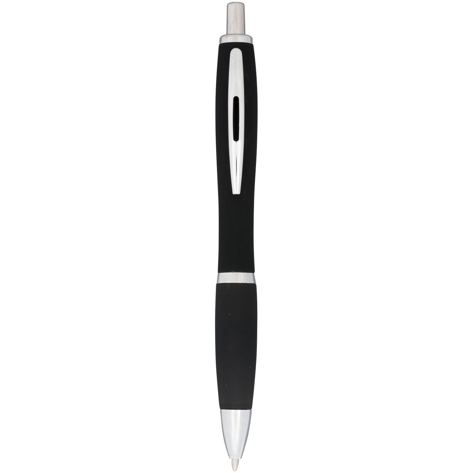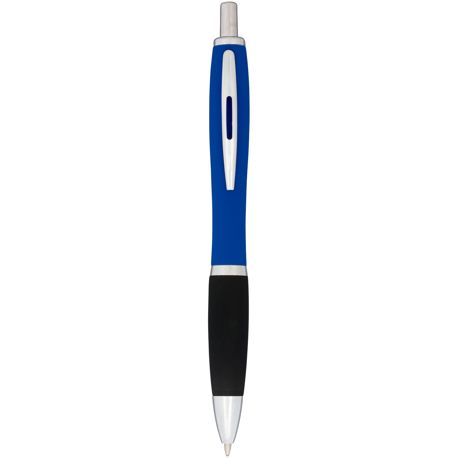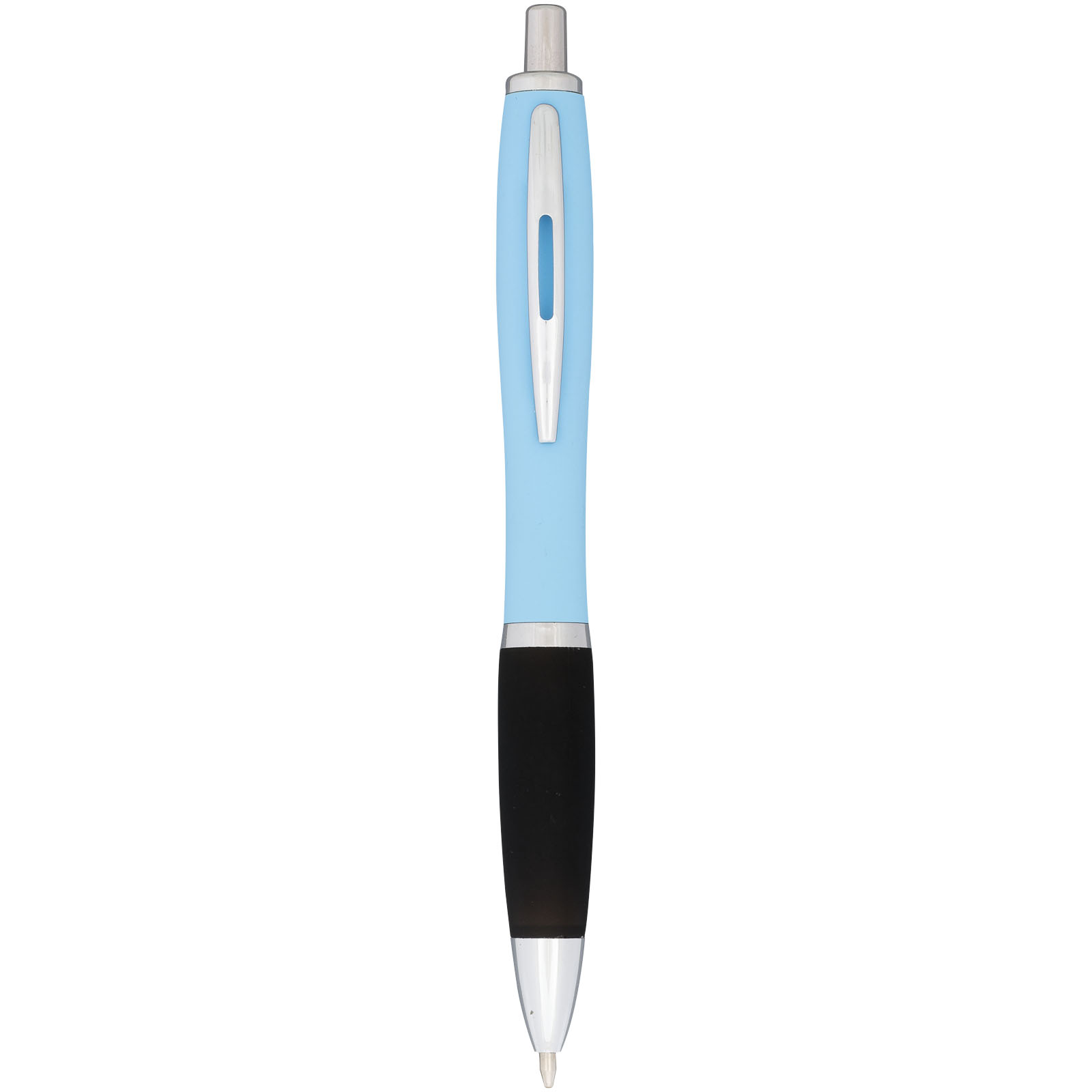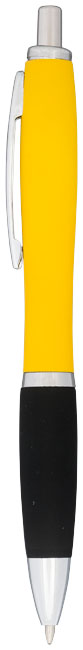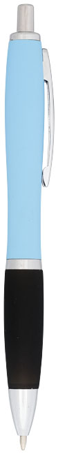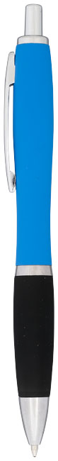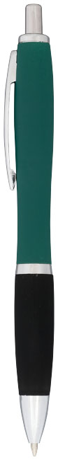 Guľôčkové pero Nash, pogumované. Guličkové pero Nash s prítlačným mechanizmom, s farebným telom s povrchovou úpravou mäkkou na dotyk v celej rade žiarivých farieb. Dodávané s čiernym atramentom. Hliníkové telo so silikónovým uzáverom.