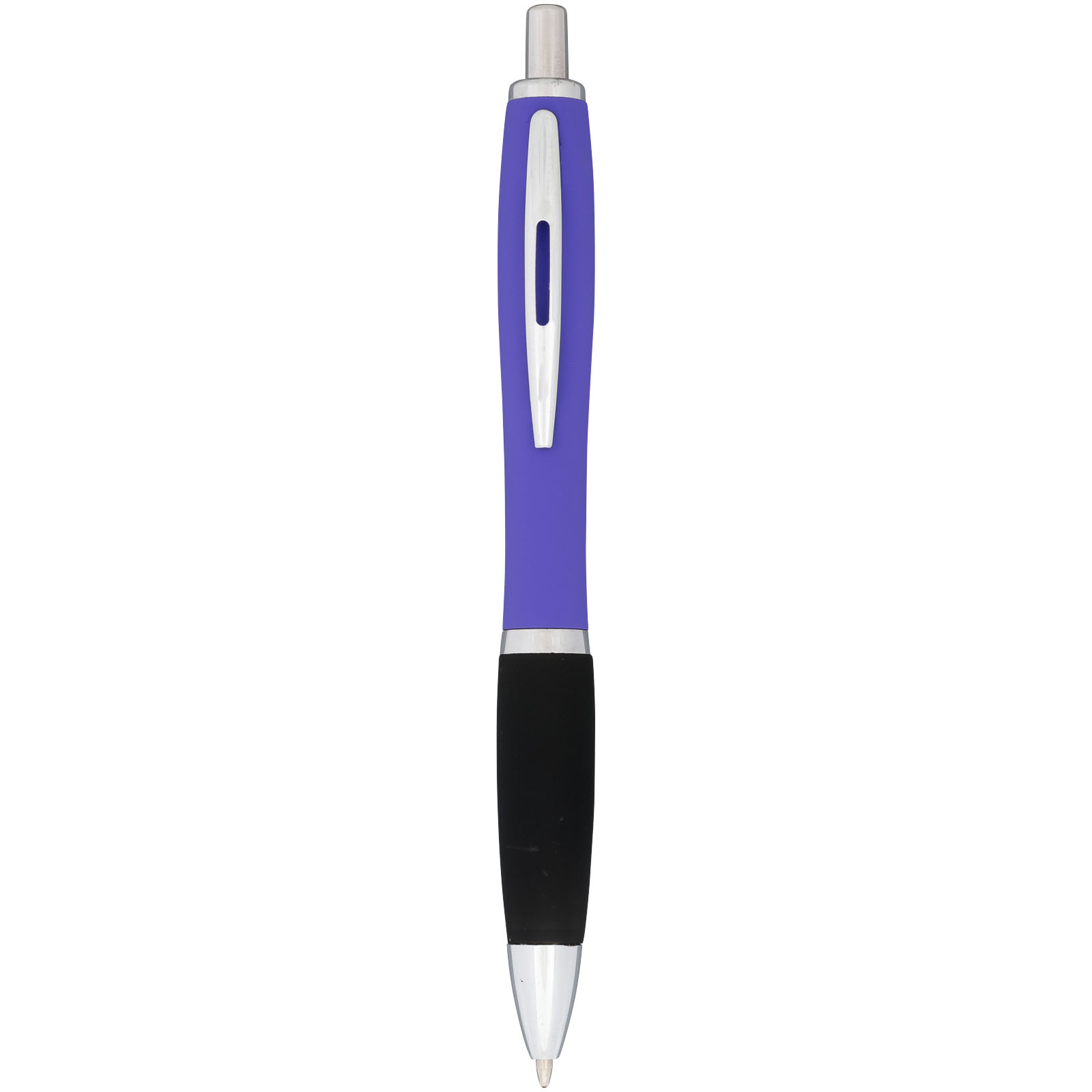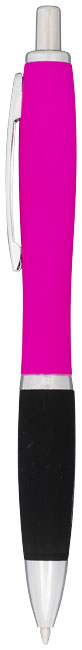 Guľôčkové pero Nash, pogumované. Guličkové pero Nash s prítlačným mechanizmom, s farebným telom s povrchovou úpravou mäkkou na dotyk v celej rade žiarivých farieb. Dodávané s