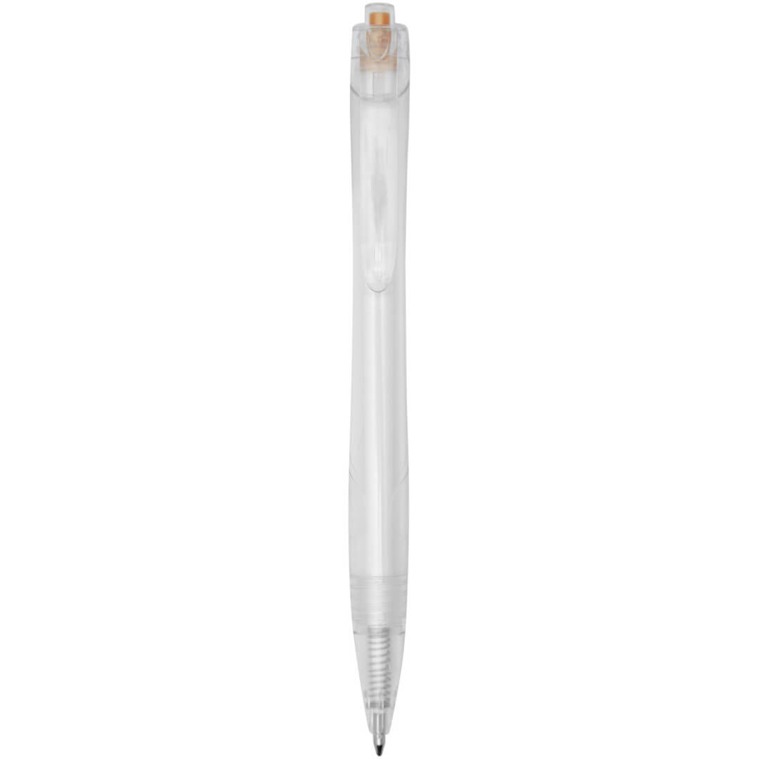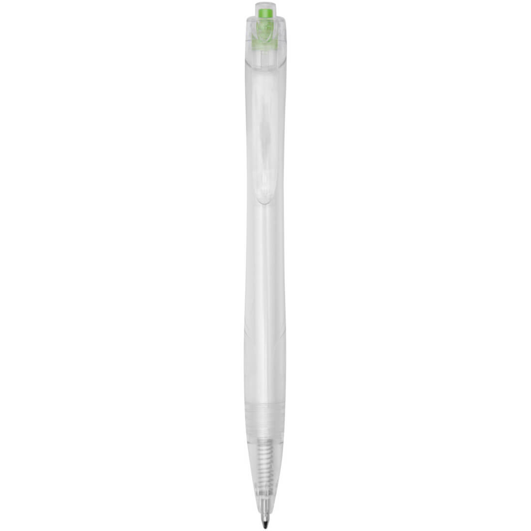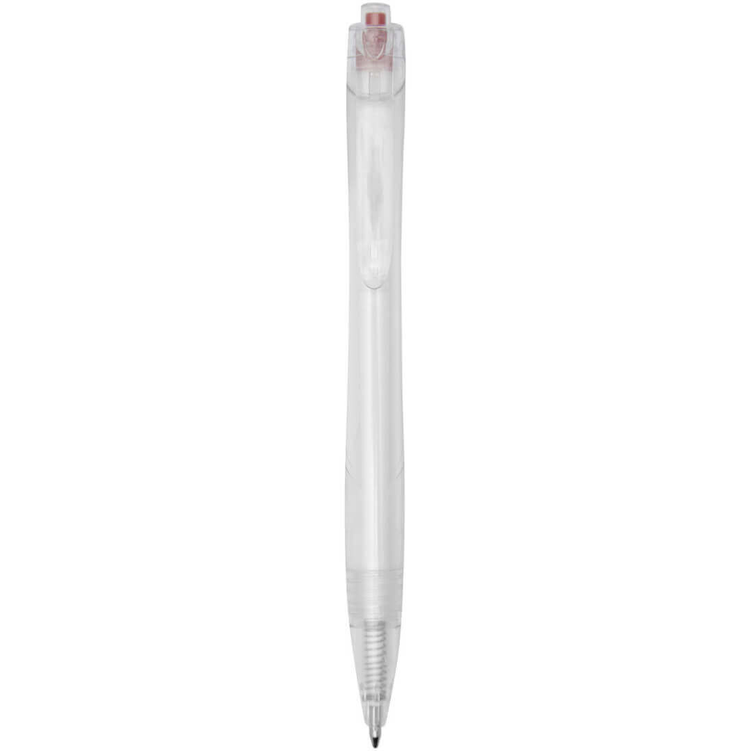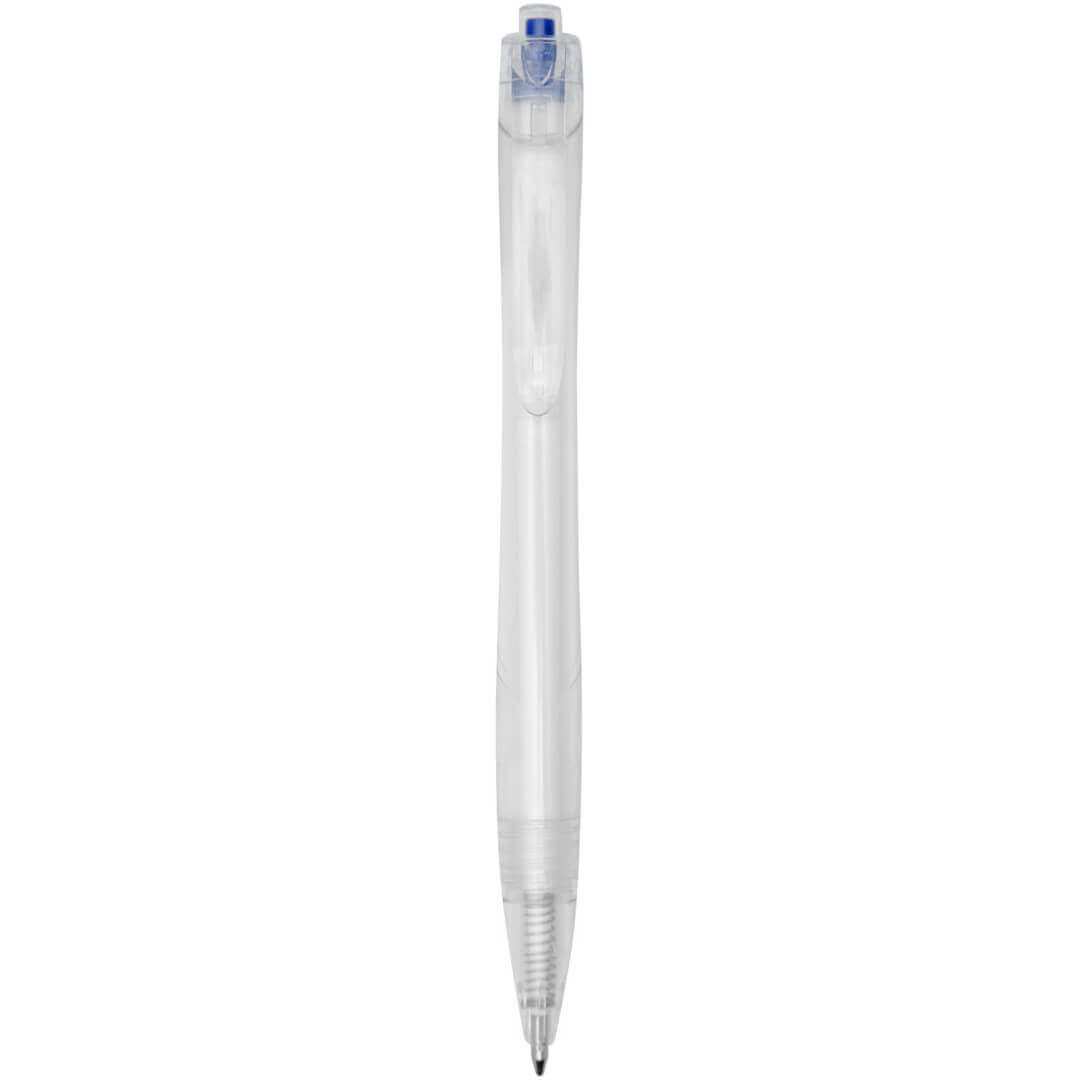 Stláčacie guličkové pero vyrobené z recyklovaného PET, ktorý znižuje spotrebu prvoplastu. Toto guľôčkové pero má priehľadné telo a farebné tlačidlo. Obsahuje modrú náplň a je možné ho kombinovať so zápisníkom Honua RPET 107763.