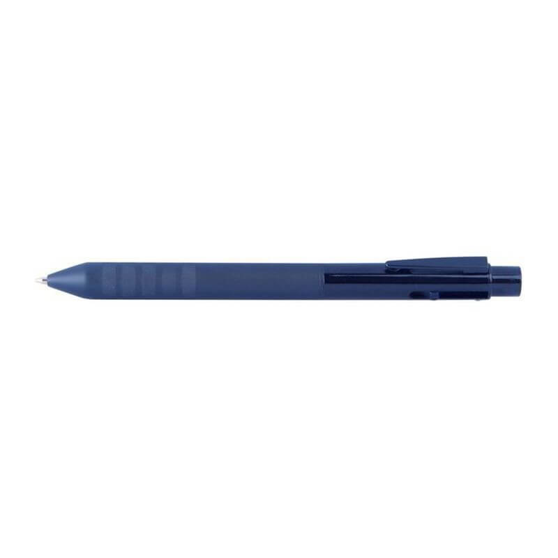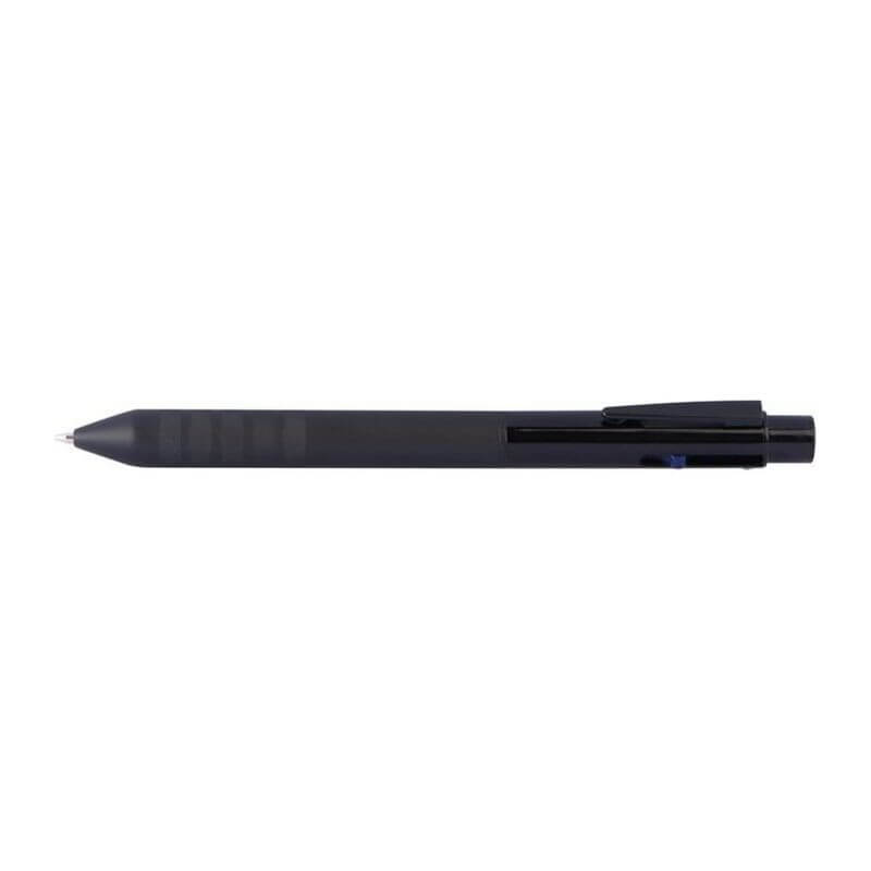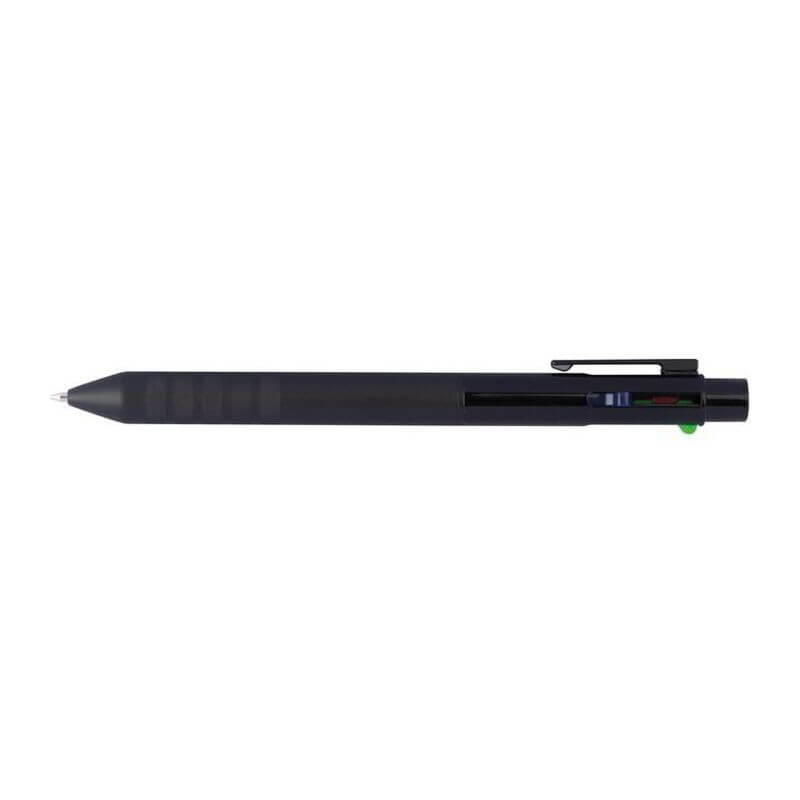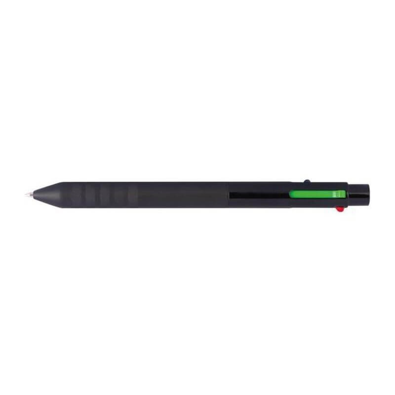 Guľôčkové pero s gumeným povrchom a protišmikovým uchopením obsahuje 4 rôznofarebné tuhy: modrú, červenú, zelenú a čiernu. Spôsob potlače gravírovanie.