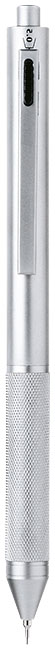 Guľôčkové pero Casablanca 4-v-1. Guličkové pero s mechanizmom prítlačného typu s čiernou červenou náplňou, mikroceruzkou, oranžovým zvýrazňovačom vzorovaným úchopom. Kov.