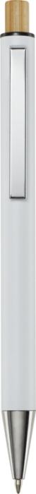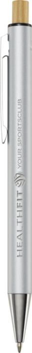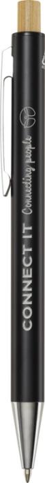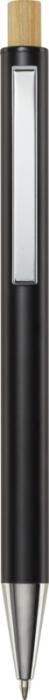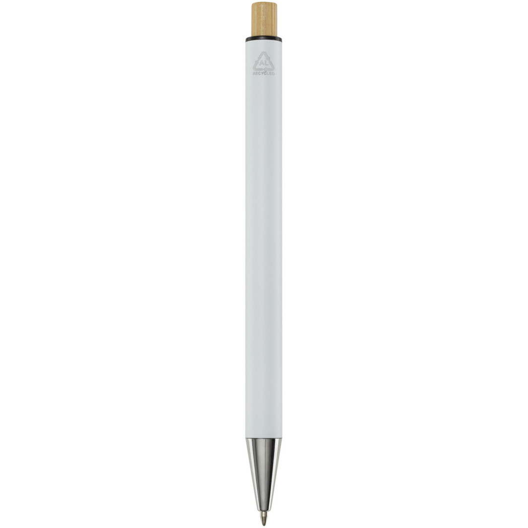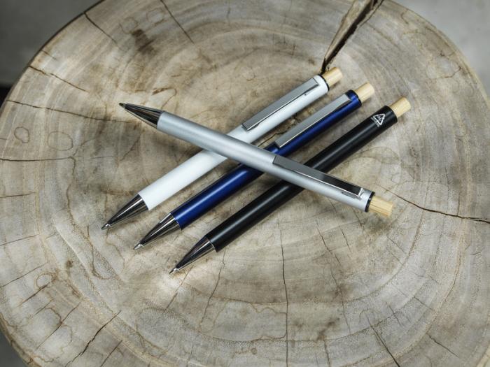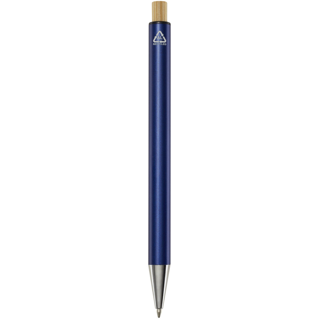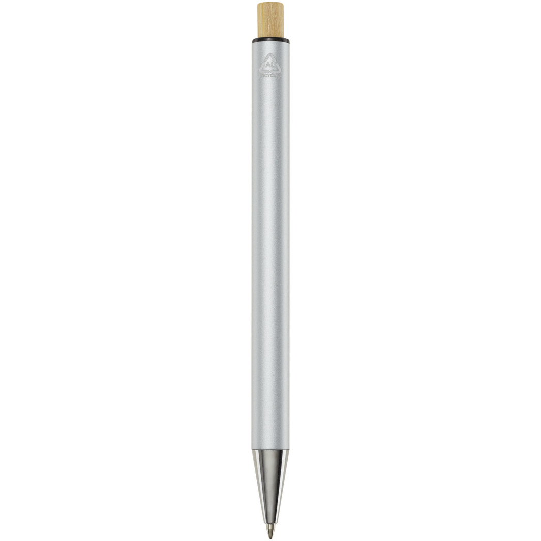 Guľôčkové pero Cyrus je vyrobené z recyklovaného hliníka, čo si vyžaduje menej energie ako výroba hliníka z nerastných surovín. Znižuje tiež množstvo odpadu na skládkach a pomáha šetriť prírodné zdroje s cieľom znížiť emisie skleníkových plynov. Tlačidlo je vyrobené z bambusu. Farba atramentu: Čierna. Dĺžka písania: 800 metrov. Rozmer hrotu: 1,00 mm.