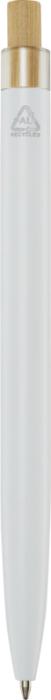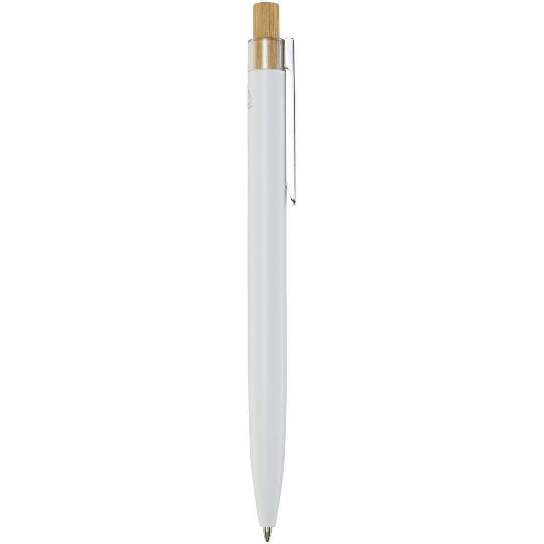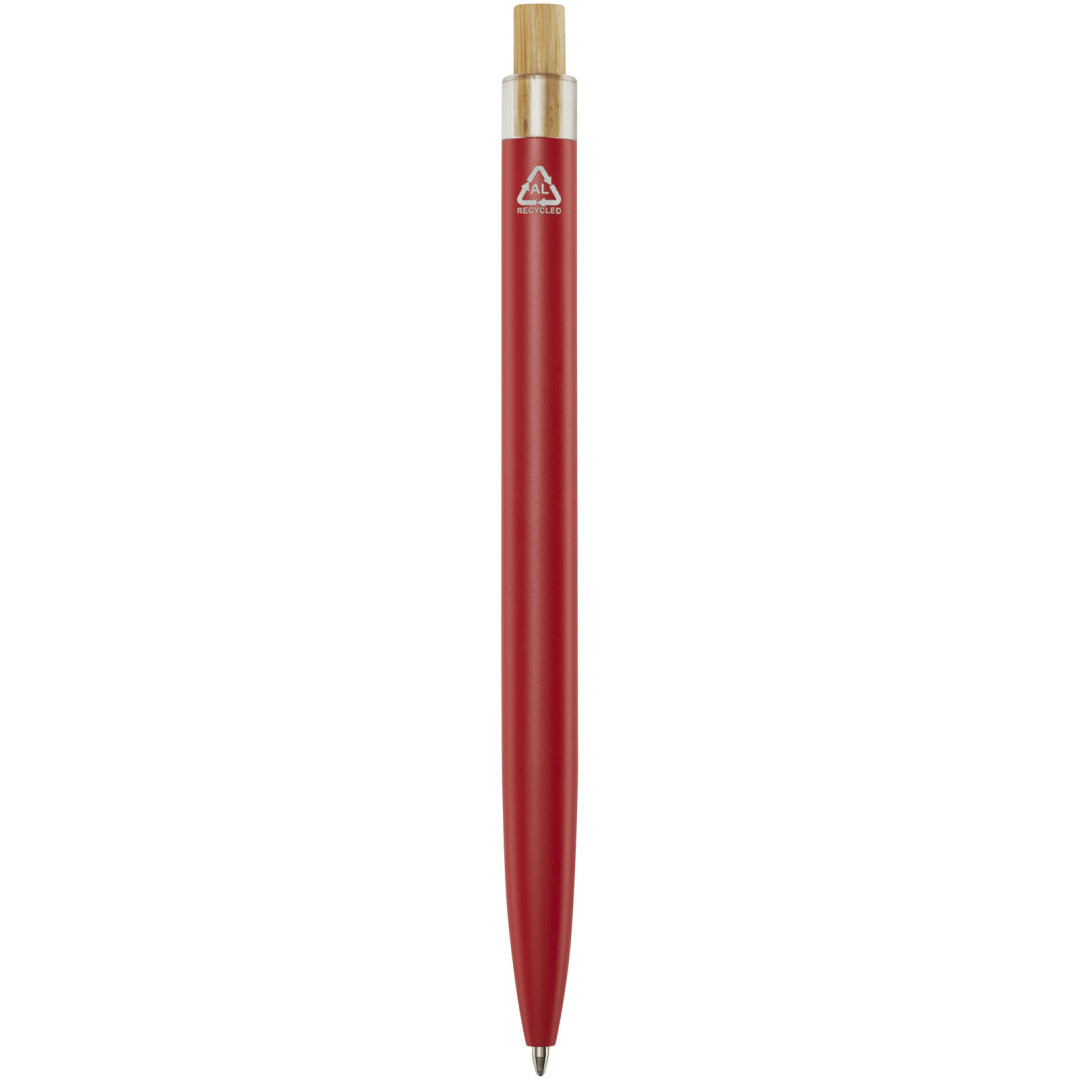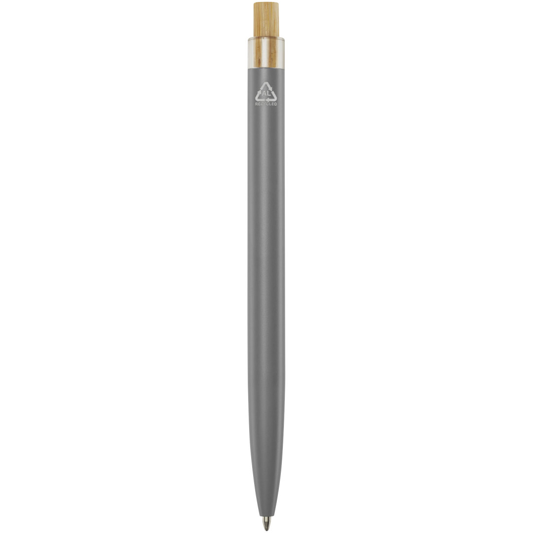 Guľôčkové pero Nooshin je vyrobené z recyklovaného hliníka, čo si vyžaduje menej energie ako výroba hliníka z nerastných surovín. Znižuje tiež množstvo odpadu na skládkach a pomáha šetriť prírodné zdroje s cieľom znížiť emisie skleníkových plynov. Tlačidlo je vyrobené z bambusu. Farba atramentu: Čierna. Dĺžka písania: 800 metrov. Rozmer hrotu: 1,00 mm.