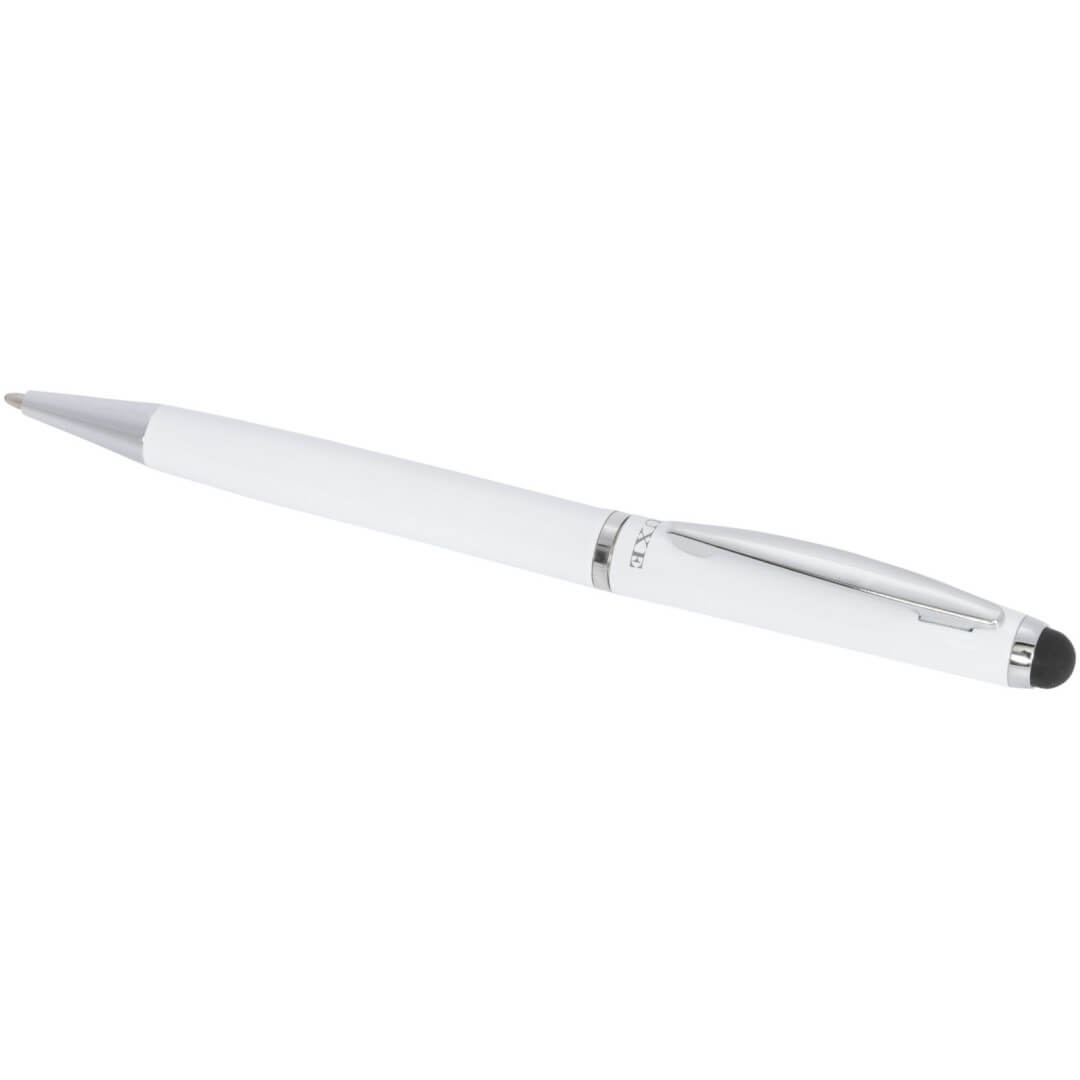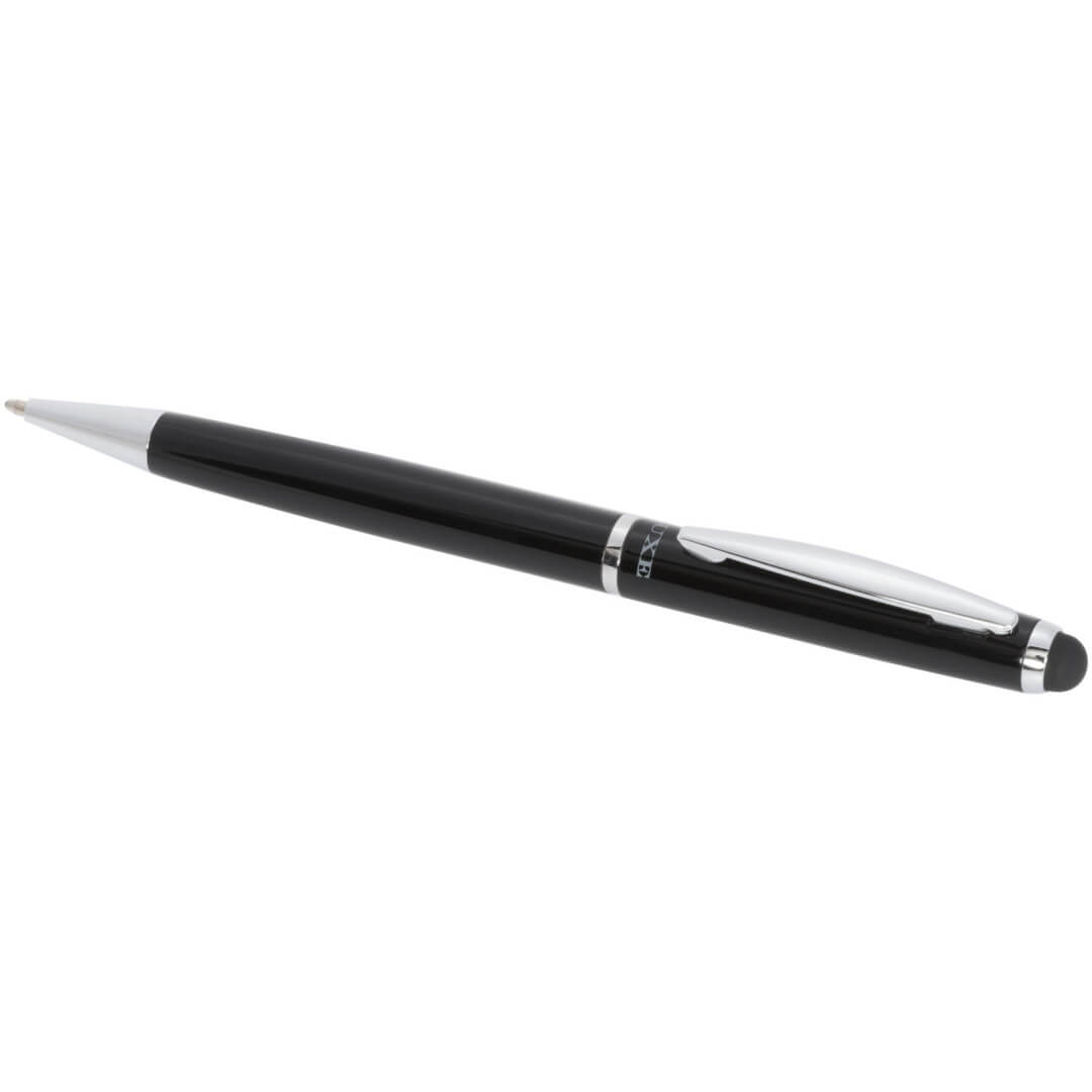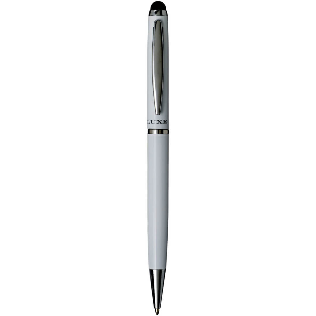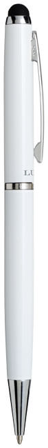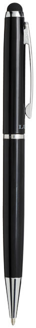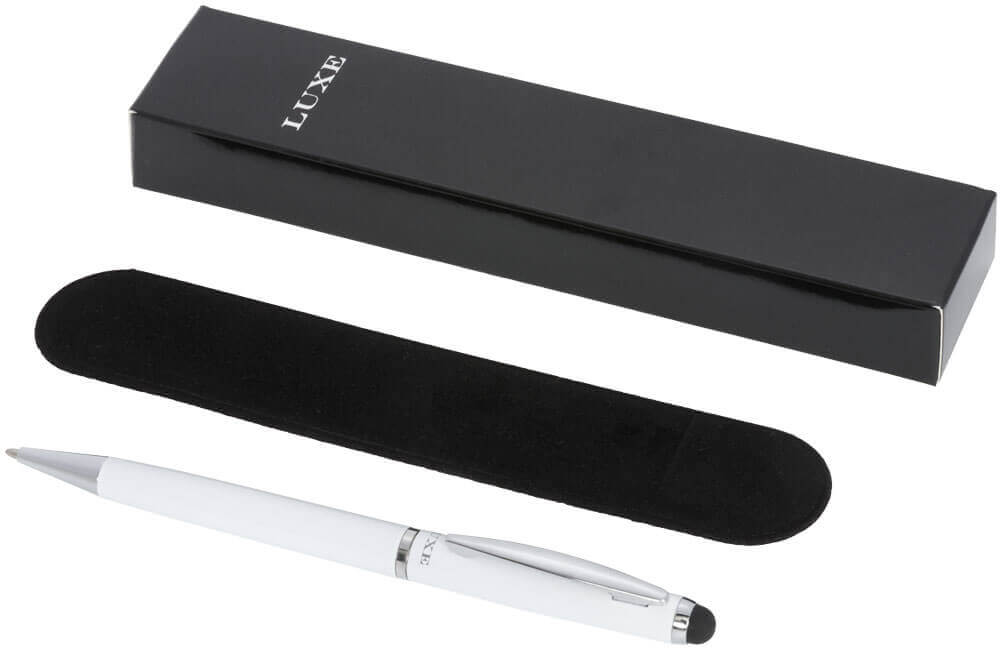 Guľôčkové pero stylus. Guľôčkové pero so zamatovým vreckom a exkluzívnym dizajnom otočného mechanizmu. Zabalené v darčekovej krabičke LUXE (veľkosť: 17 x 3,5 x 2 cm). Kov.