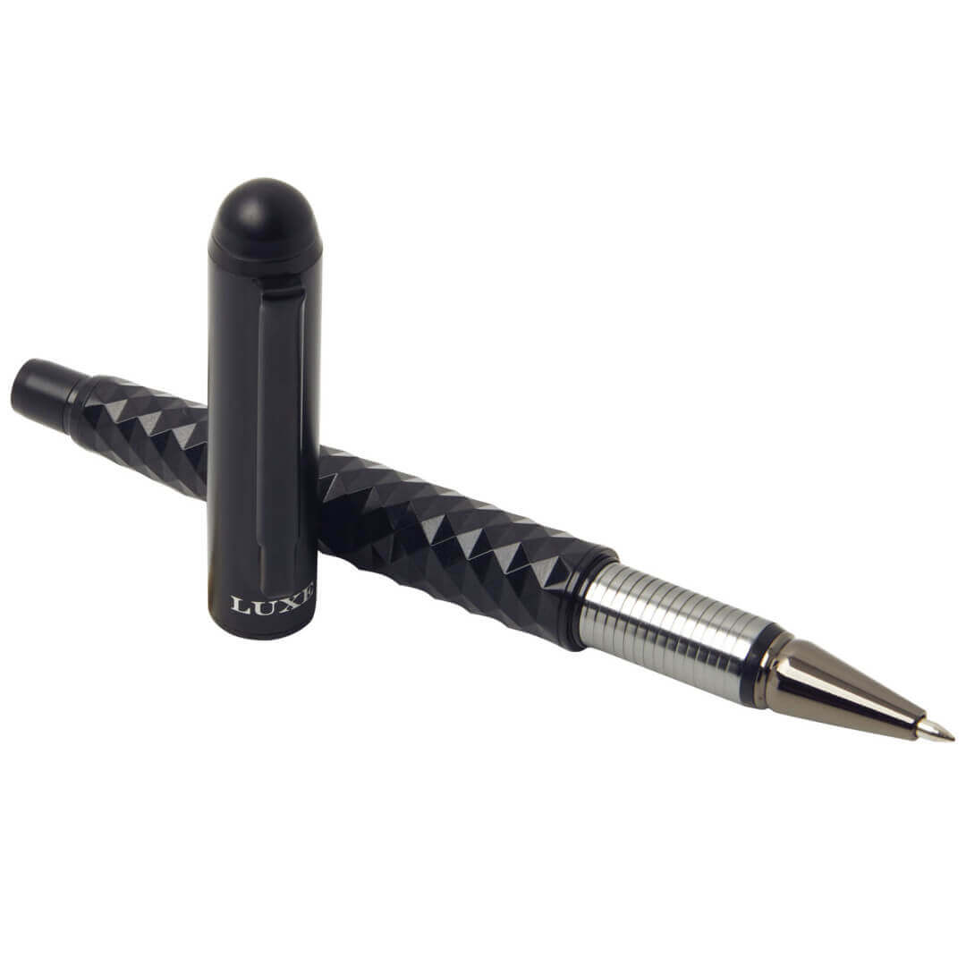 Elegantný vzhľad a dobrá kvalita sa spájajú v tomto exkluzívnom dizajne guličkového roller pera. Telo ponúka na dotyk príjemný dotyk. Dodáva sa naplnené modrou atramentovou náplňou, zabalené v darčekovej krabičke Luxe. Je možné skombinovať do darčekovej sady so stylusom alebo klikacím guličkovým perom.