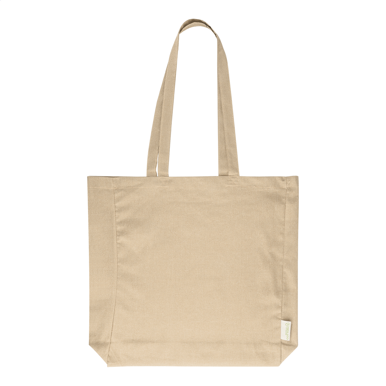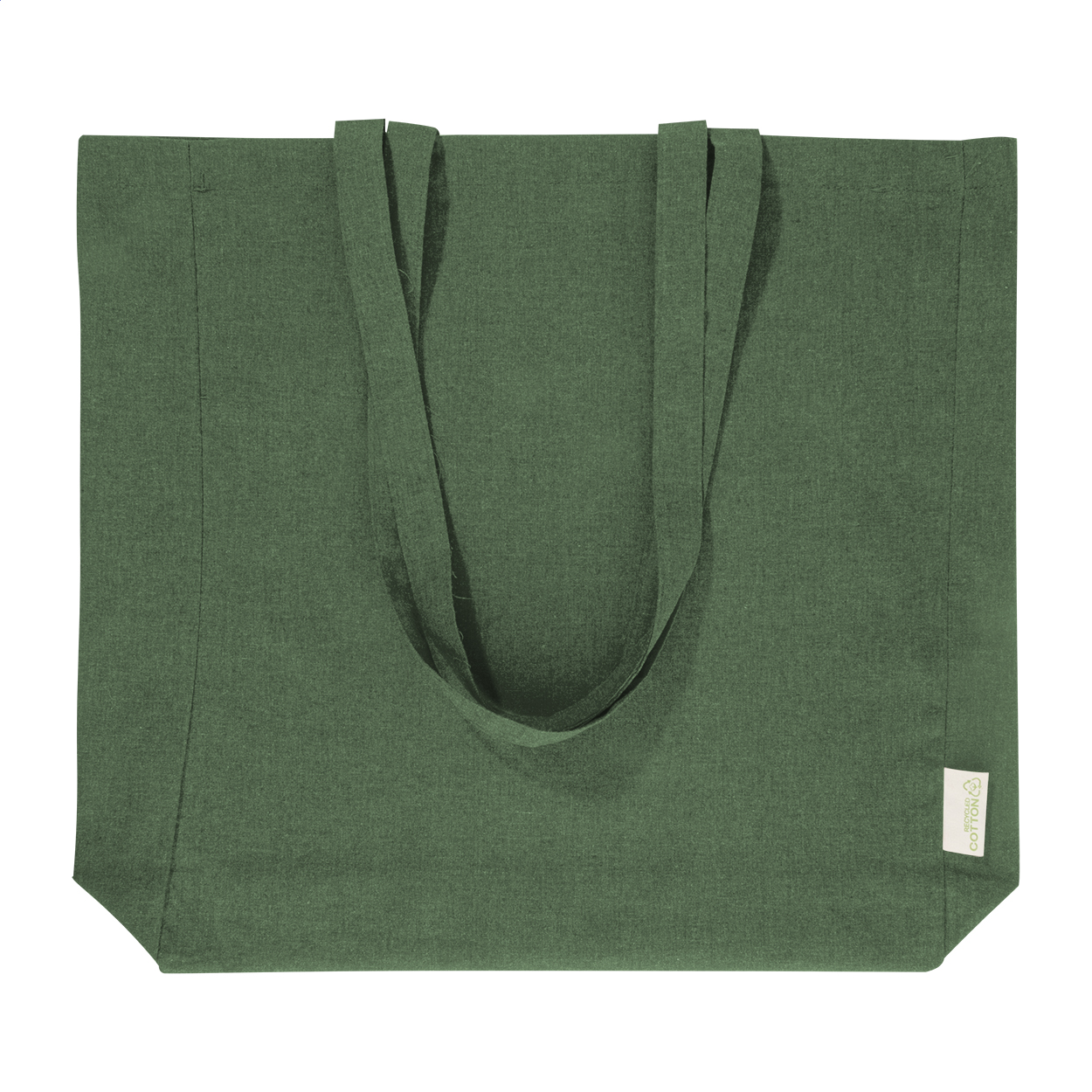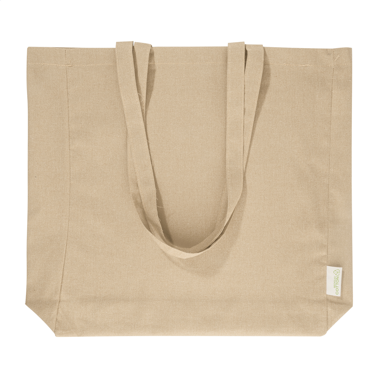 Nákupná taška s klinom a dlhými ušami zo 70% recyklovanej bavlny a 30% RPET polyesteru, 140 g/m². S výraznou etiketou o recyklovanej bavlne. New. Go Green. Material 2 weight: 140...