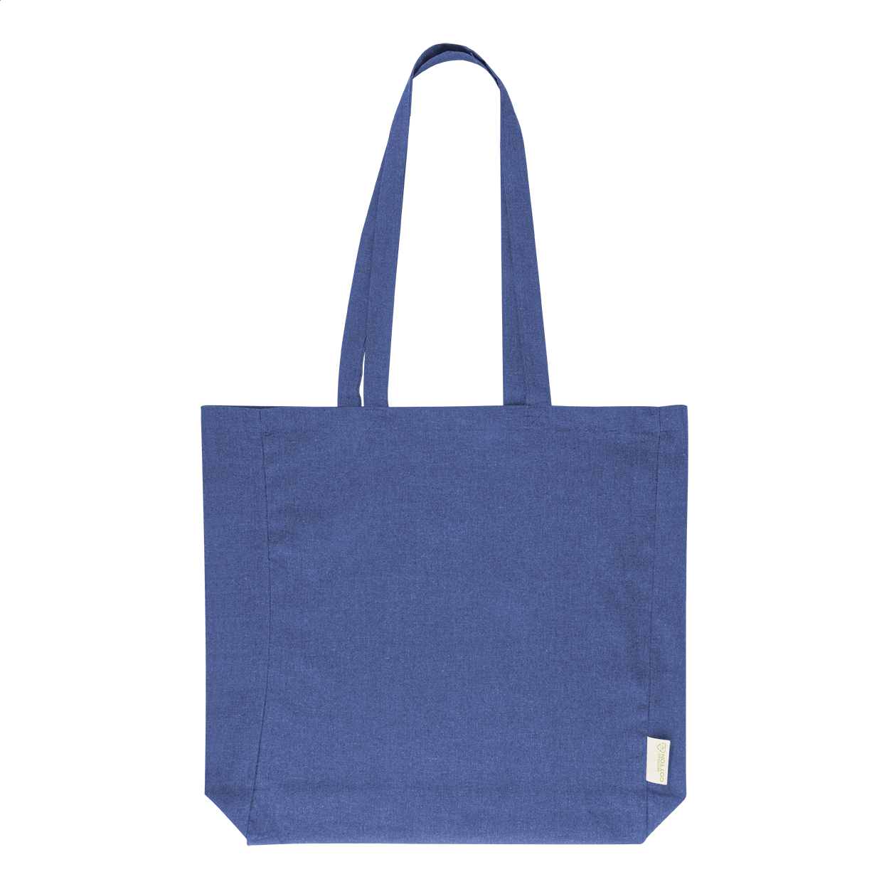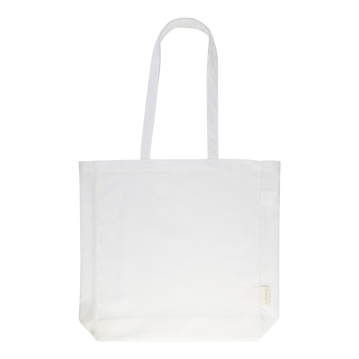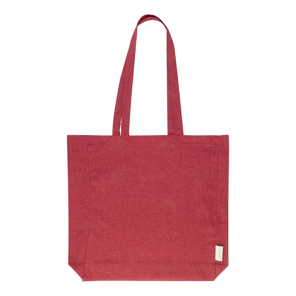 Nákupná taška s klinom a dlhými ušami zo 70% recyklovanej bavlny a 30% RPET polyesteru, 140 g/m². S výraznou etiketou o recyklovanej bavlne. New. Go Green. Material 2 weight: 140...