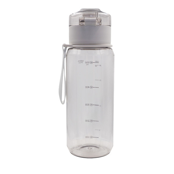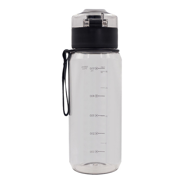 Fľaša na pitie 680 ml z tritanu s objemovým ukazovateľom, odolná proti vytečeniu. Vybavená popruhom na zápästie a dvojitým bezpečnostným prvkom na ochranu tekutiny pred vyliatím - tlačidlo a posuvný zámok. Možnosť ručného umývania.