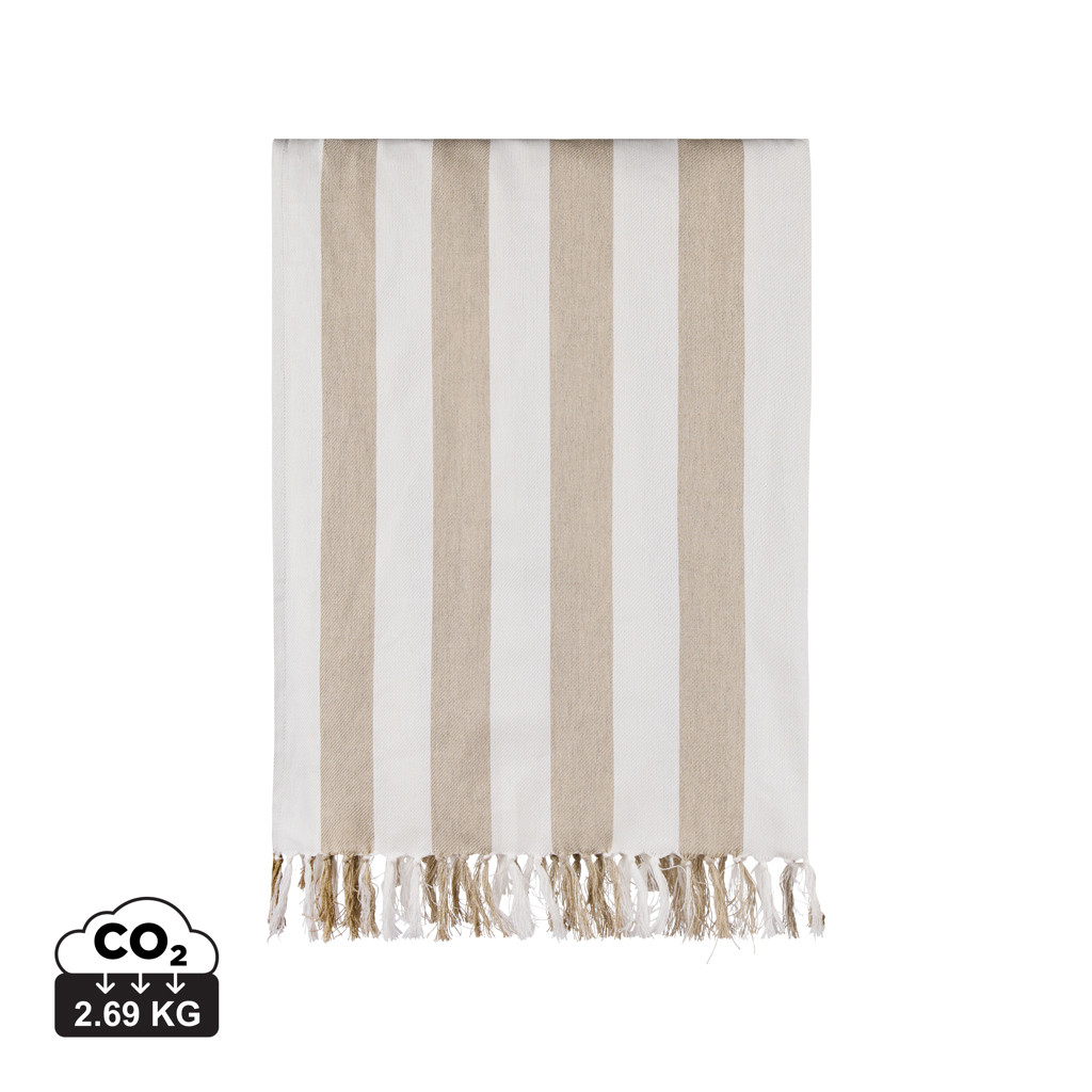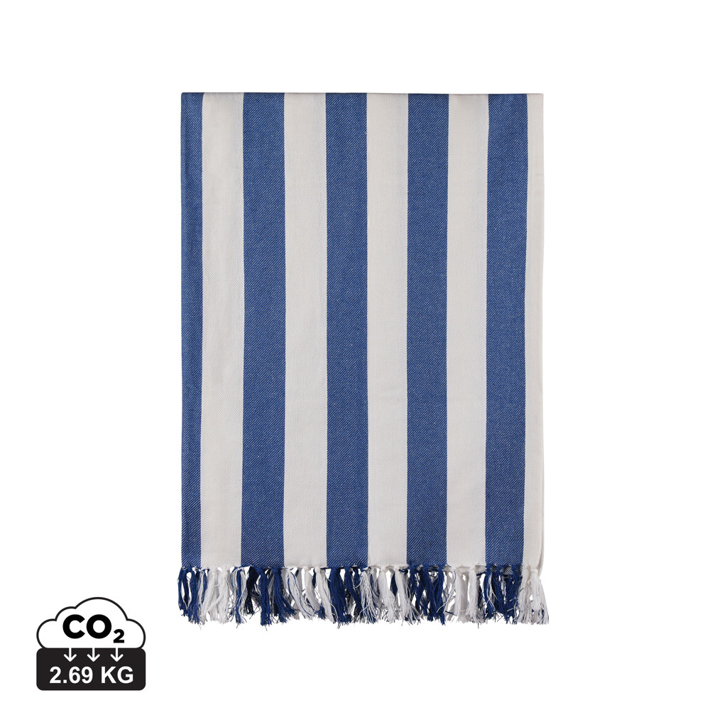 Plážová osuška Hamam má klasický dvojfarebný pruhovaný vzor so strapcami. Je vyrobená z ľahkej a vzdušnej zmesi s gramážou 200 g/m2 a kombinuje pohodlie bavlny s rýchloschnúcimi vlastnosťami polyesteru. Rozmery 80x180 cm sú ideálne na pláž alebo k bazénu. Certifikát GRS zaručuje, že celý dodávateľský reťazec recyklovaných materiálov je certifikovaný. Celkový obsah recyklovaného materiálu sa odvíja od celkovej hmotnosti výrobku. Tento výrobok obsahuje 69% recyklovanej bavlny s certifikáciou GRS a 29% recyklovaného polyesteru s certifikáciou GRS.
