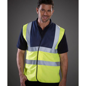 Kruhový úplet, suchý zips, Hi-Vis farby certifikované podľa EN ISO 20471 trieda 2, čierna, limetková, námornícka, fialová, zdravotnícka zelená, červená, malinová, kráľovská modrá/hi-vis žltá EN ISO 20471:2013 certifikovaná pre triedu 1, ostatné farby umožňujú zvýšenú viditeľnosť, zaručené reflexné vlastnosti podľa normy EN na 25 praní, 1 reflexný prúžok cez každé rameno, dva reflexné prúžky široké 5 cm okolo tela, možnosť prania na 40°