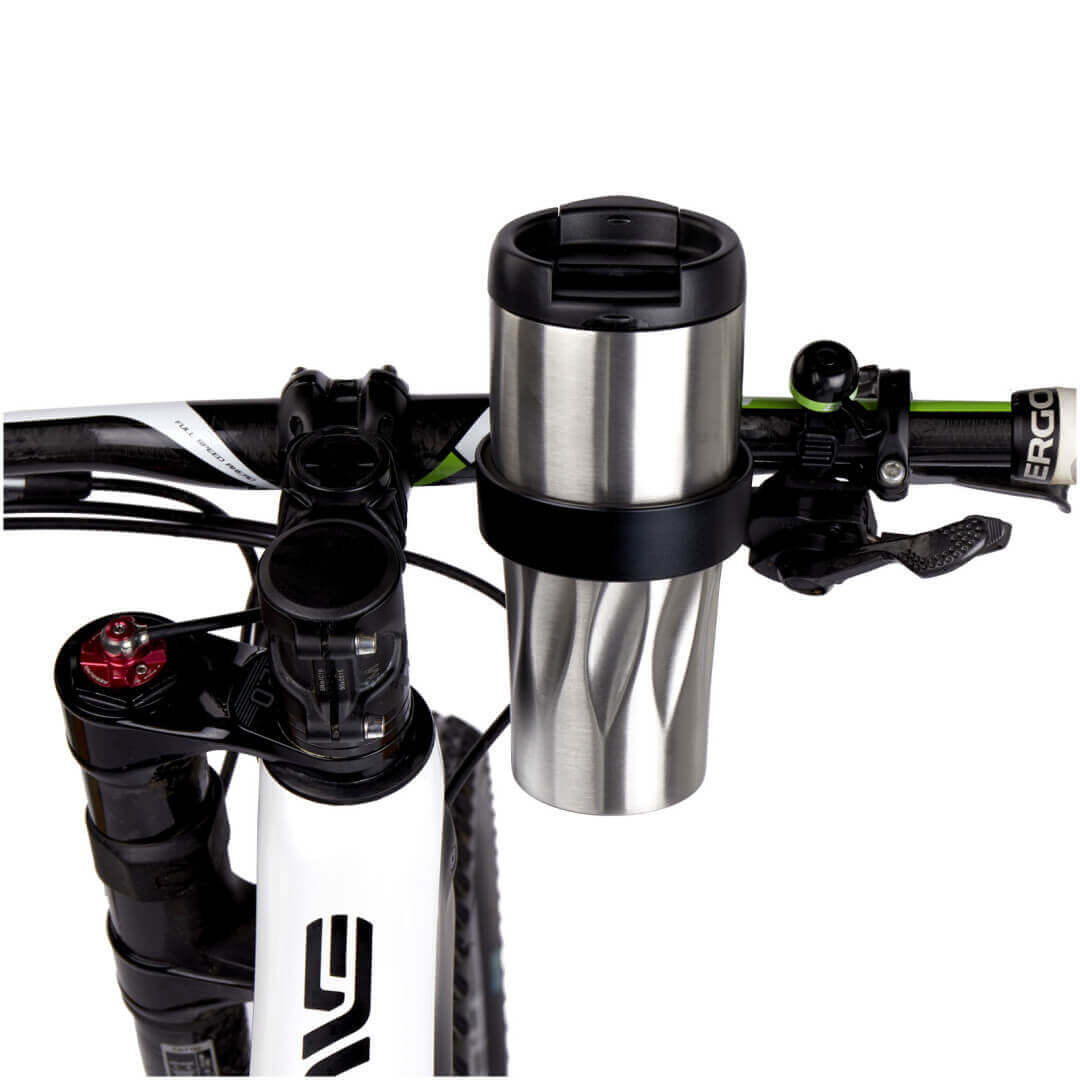 Praktický a ľahký držiak na fľašu alebo hrnček pre montáž na riadidlá bicykla, vďaka čomu je možné ľahko udržiavať pitný režim pri jazde na bicykli. Dodáva sa s montážnym držiakom, ktorý sa hodí na takmer všetky riadidlá (do obvodu 2,5 cm) a vnútro je pokryté penou umožňujúcou pevné uchopenie bez poškriabania fľaše alebo hrnčeka. Držiak má vnútorný priemer 7,5 cm a výšku 2,5 cm, čo poskytuje veľkú tlačovú plochu. Balené v darčekovej krabičke z recyklovanej lepenky s rozmermi 12,5 × 12 × 6,5 cm.
