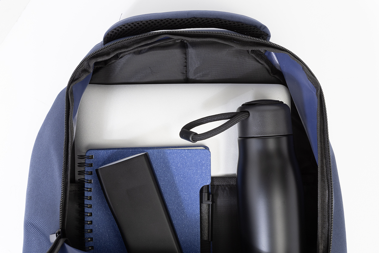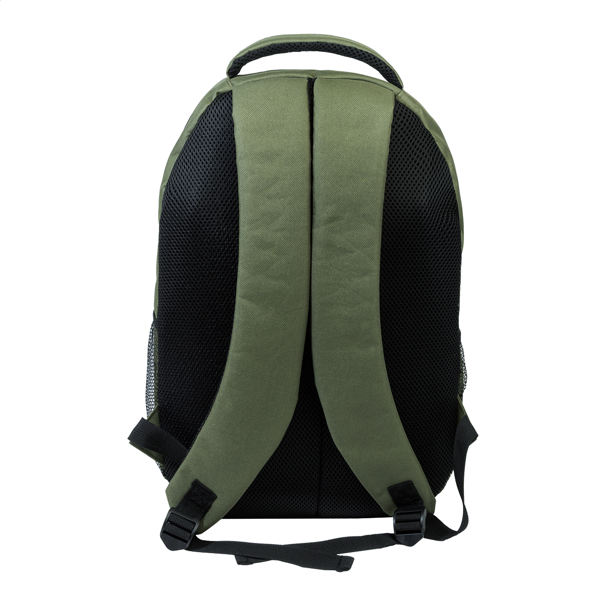 Vodeodolný batoh z RPET s hlavnou priehradkou na zips, polstrovanou priehradkou na notebook (13"), spodnou priehradkou na zips a skrytým bočným vreckom. S polstrovaným chrbtom a ramennými popruhmi. Polyester 600D RPET s PU záterom a výrazným štítkom RPET. New. Go Green. Nosnosť tašky: 8 kg. Objem tašky: 23 l