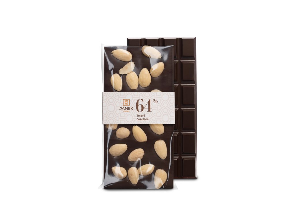 Výrazná horká čokoláda so 64 % kakaa a poctivou dávkou ručne zbieraných mandlí (20 %). Bez aróm, esencií, lepku a palmového oleja. Skutočné vanilkové zrnká dodávajú čokoláde jemnú vôňu a čistú chuť. Každý kúsok chrumká a pomaly sa rozplýva. Česká výroba, poctivé suroviny, radosť pre všetkých milovníkov kvalitnej tmavej čokolády. Zloženie: kakaová hmota (64 %), kakaové maslo, mandle (20 %), cukor, emulgátor: sójový lecitín, aróma: prírodná vanilkaVáha: 105 g