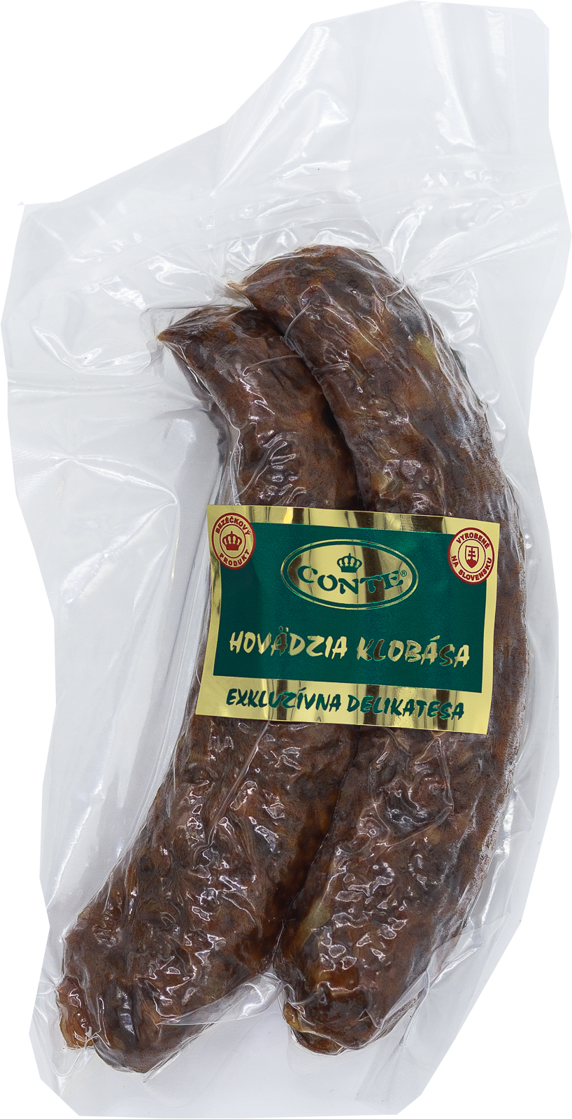 Hovädzia klobása – trvanlivý údený výrobok zo 100 % hovädzieho mäsa, ochutený zázvorom, prírodnými koreninami a soľou. Bez éčok, vákuovo balená. Skutočná chuť slovenských lúk.