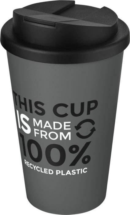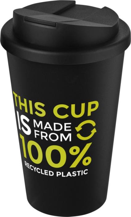 Termo hrnček s odšroubovacím, odolným voči obliatiu vekom a s dvojitou stenou. Uzáver veka zabraňuje rozliatiu, je vyrobený bez silikónu, plne recyklovateľný. Vyrobené zo 100% recyklovaných materiálov. Odtieň čiernej sa môže líšiť v závislosti od charakteru recyklovaného materiálu. Objem je 350 ml. Vyrobené vo Veľkej Británii. Balené v kompostovateľnom vrecku.