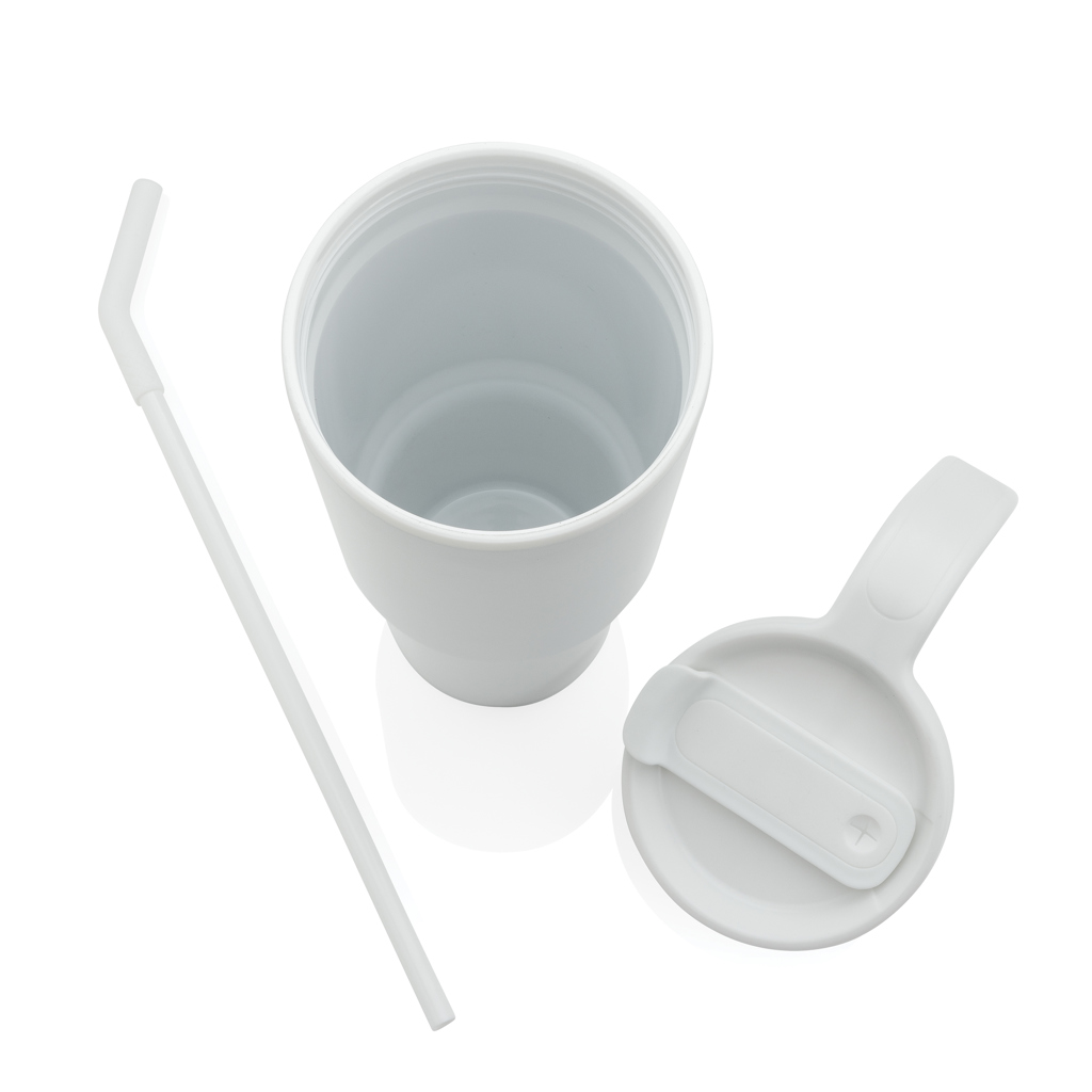 Najobľúbenejší hrnček je teraz vhodný pre perfektnú 360 ° potlač po celom tele. Hrnček je vyrobený z recyklovaných materiálov. Inovatívne viečko má otočný uzáver s tromi pozíciami: otvor pre slamku odolný proti rozliatiu, náustok na pitie a plne utesnený uzáver. Ergonomická rukoväť s pohodlným úchytom zaisťuje ľahké nosenie a tenká základňa sa zmestí do väčšiny držiakov nápojov v aute. Recyklovaný obsah podľa celkovej váhy produktu: 36%. Iba ručné umývanie. Bez BPA. Kapacita: 900 ml. Zahŕňa darčekové balenie z kraftového papiera s certifikáciou FSC®.