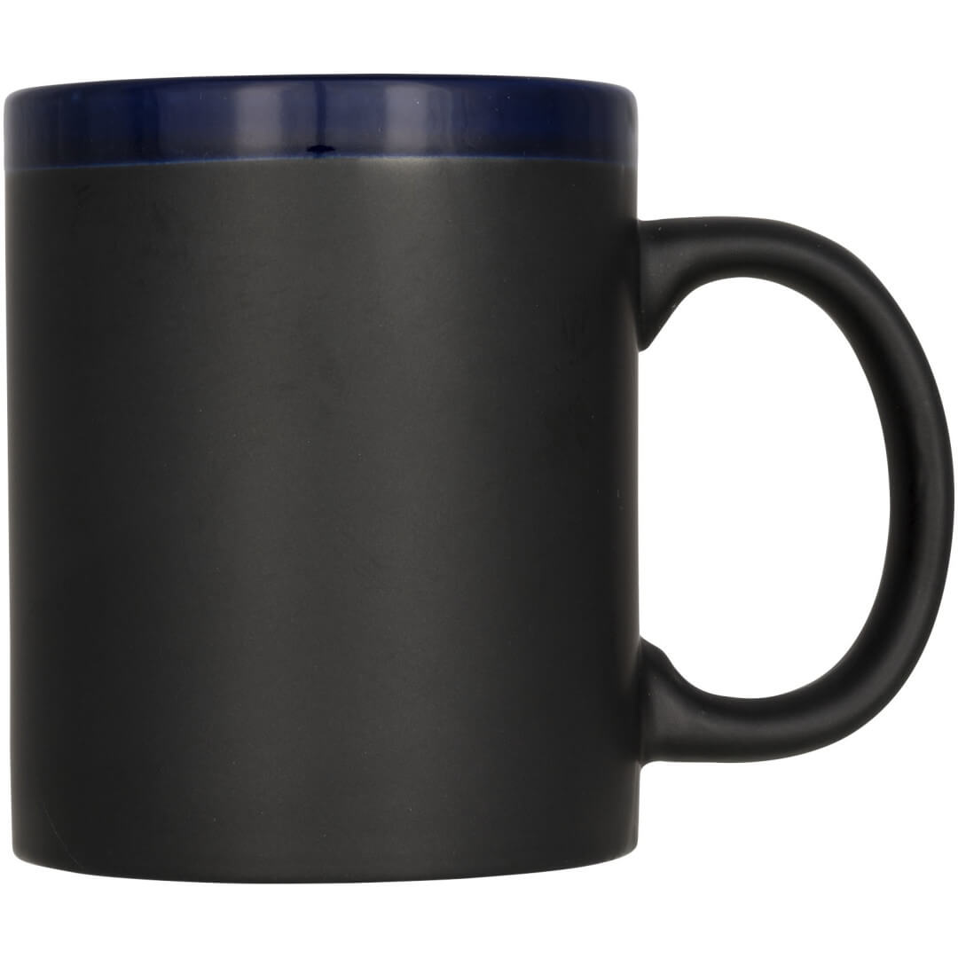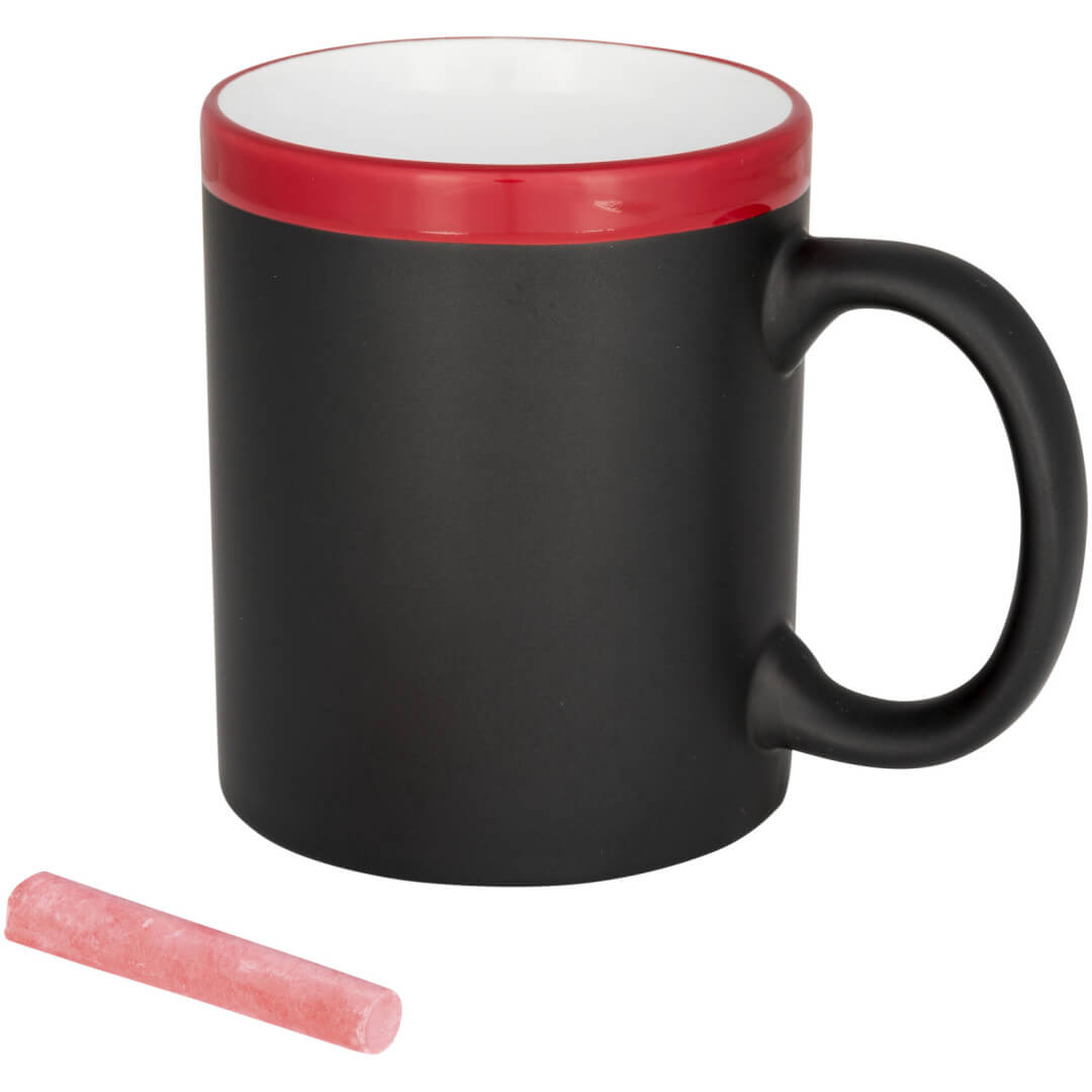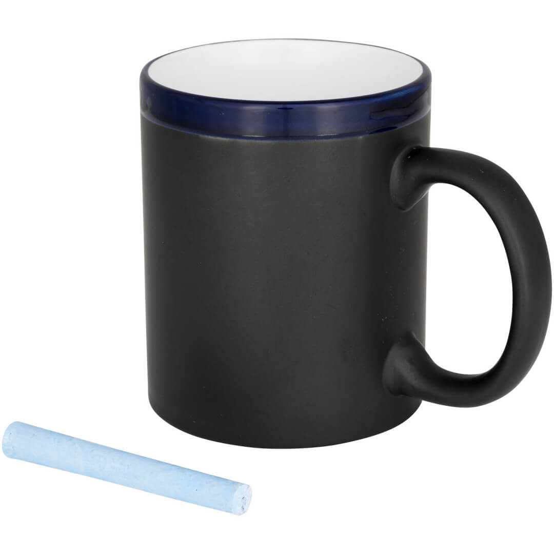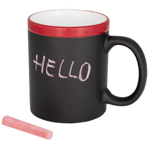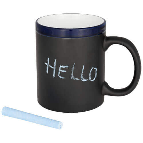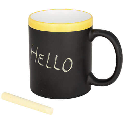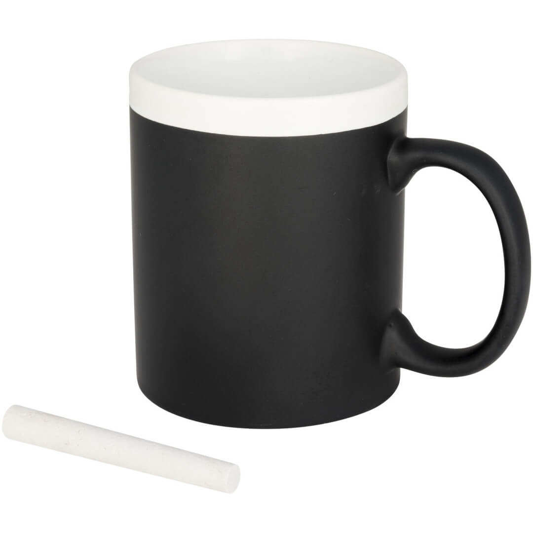 Hrnček popisovateľný kriedou. Tento hrnček možno prispôsobiť písaním na tabuľový povrch kriedou. Krieda je zahrnutá. EN12875-1 kompatibilné; vhodný do umývačky riadu, aj keď je ozdobený. Objem je 300 ml. Vyvedené v bielej škatuľke. Keramika.