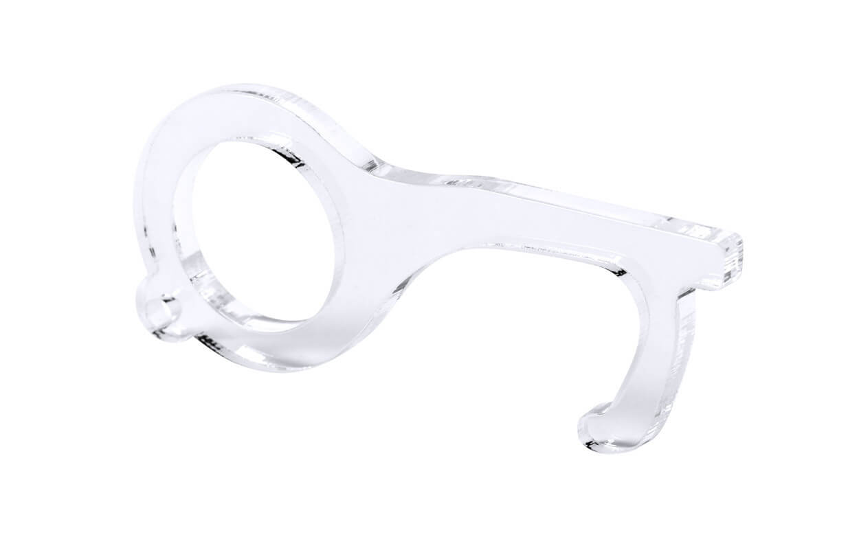 Praktický hygienický kľúč z priehľadného akrylu pre stlačenie tlačidiel a otváranie dverí bez priameho kontaktu