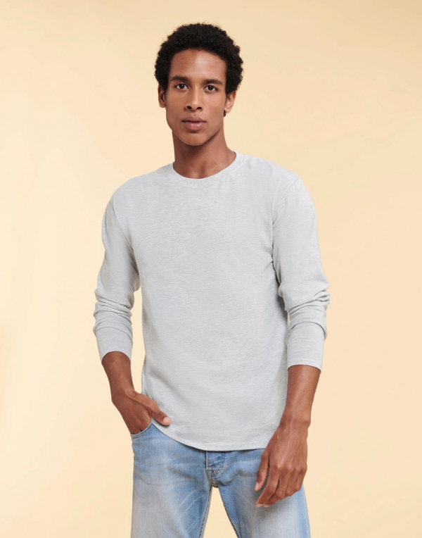 195 g/m² (White: 190 g/m²), 100% bavlna, prstencová a česaná, Heather Grey: 97% bavlna, 3% polyester, jemné na dotyk, rebrovaný lem okolo krku, bavlna/elastan, dvojité švy, spevňujúca páska na ramenách z odpovedajúceho materiálu, možno prať do 60°C
