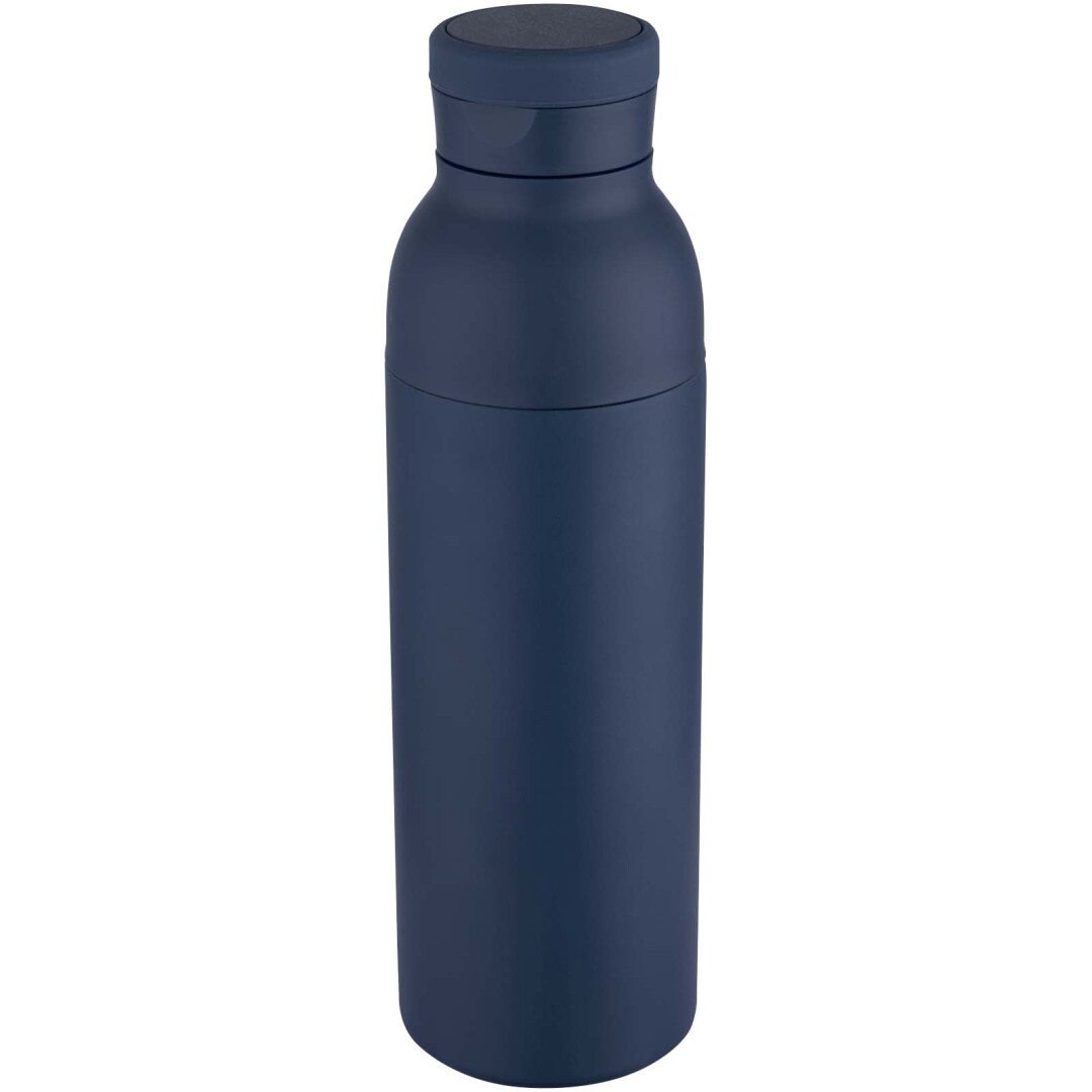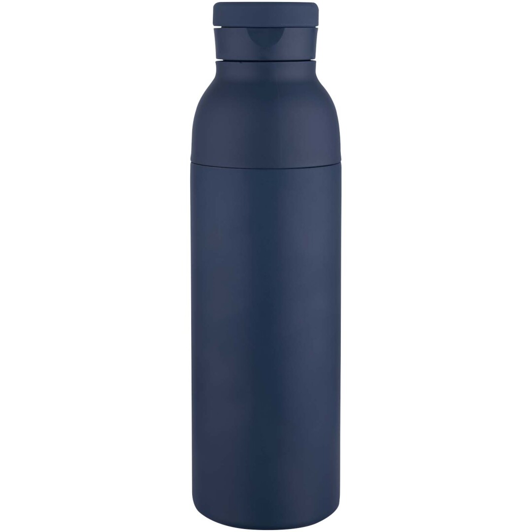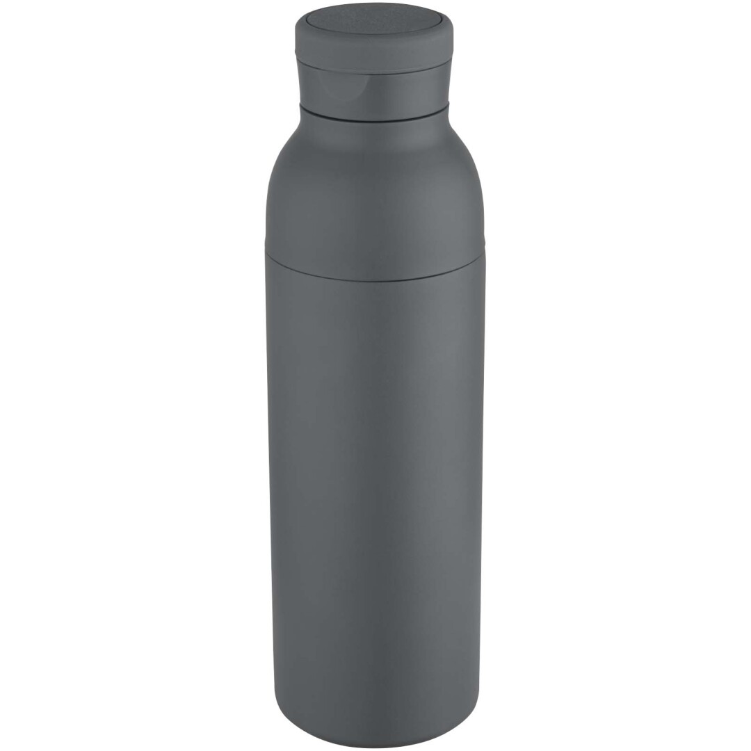 Dvojstenná, vákuovo izolovaná fľaša na vodu z nerezovej ocele s certifikáciou RCS s diskrétnym silikónovým uchom zabudovaným vo viečku. Dvojdielna konštrukcia uľahčuje čistenie, zatiaľ čo odolný práškový lak a medené pokovanie zaisťujú dlhú životnosť. Dodáva sa v darčekovej krabičke z recyklovanej lepenky. Objemová kapacita: 650 ml.