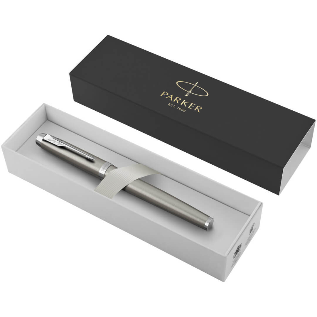 Pero Parker IM je ideálnym partnerom s neobmedzeným potenciálom. Elegantný zužujúci sa tvar sa hladko prepojí s inovatívnymi dizajnmi a dosiahne rozhodného výsledku. Povrchové úpravy dopĺňajú telo, čo robí z tohto pera Parker dokonalý písací nástroj pre študentov a profesionálov. Neuveriteľne hladký hrot Rollerball zaisťuje plynulé písanie bez odskokov, ktoré vám umožnia zanechať nápadné stopy všade, kde píšete. Na použitie s atramentovými náplňami QUINK Rollerball. Dodáva sa s jednou kazetou a darčekovú krabičkou Parker. Exkluzívny dizajn.