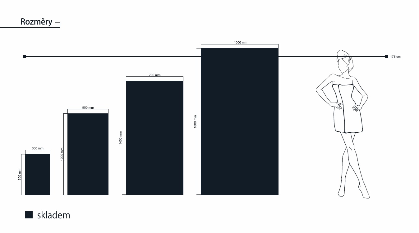 Veľkosť: 30 x 50 cm, 50 x 100 cm, 70 x 140 cm, 95 x 180 cm