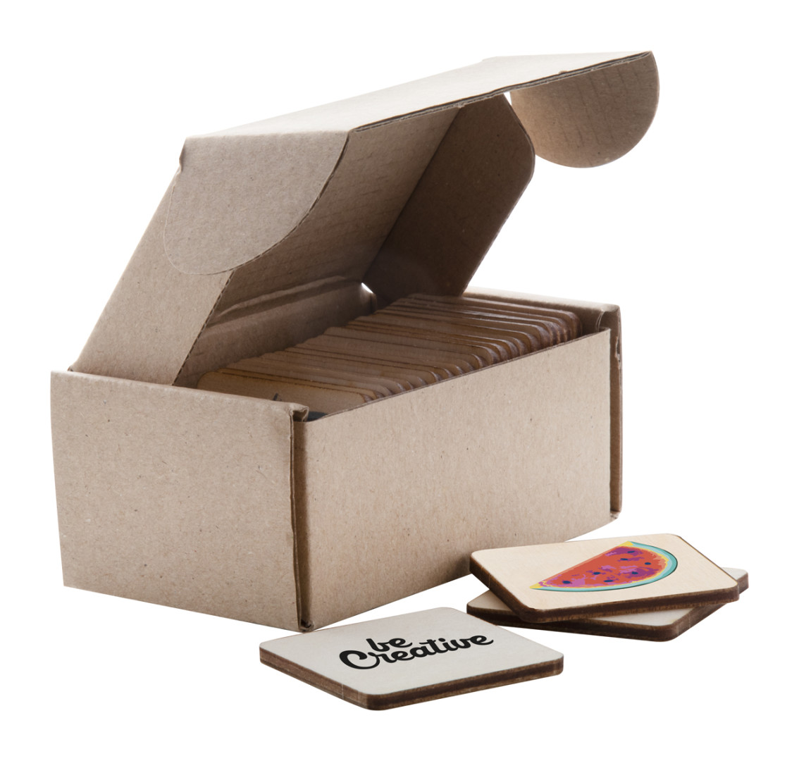 Polaminované pexeso z brezy s vlastnou grafikou. S 24 dieliky (40x40 mm). Cena zahŕňa 12 rôznych plnofarebných potlačí na prednej strane dielikov a 1 farebná potlač loga na zadnej strane všetkých dielikov, nezahŕňa tlačovú prípravu. Min. mn .: 250 ks.