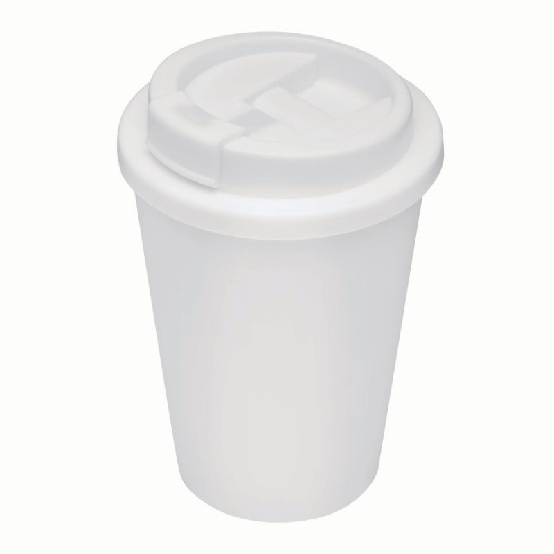 Izolovaný pohár RE-USE, dvojstenný: bezpečný skrutkovací uzáver so silikónovým tesnením a integrovaným otvorom na pitie, ktorý sa dá zložiť, recyklovaný materiál, kapacita cca. 300 ml, udrží teplo až 2 hodiny a studené až 4 hodiny.
