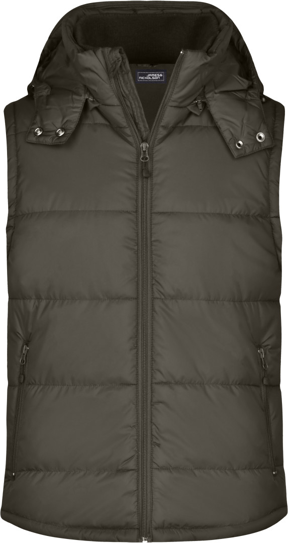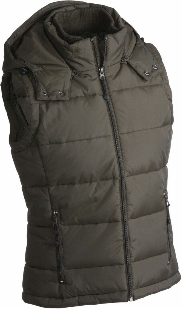 vonkajšia vrstva: 100% polyamid, prostredná vrstva: 100% polyester vesta matného vzhľadu, 2 predné vrecká, náprsné vrecko, vnútorné vrecko na mobil, odnímateľnú kapucňu a zips v podšívke, na leme a kapucni je sťahovacia šnúrka so zarážkami, z materiálu, ktorý je odolný voči vetru a vode (600mm)