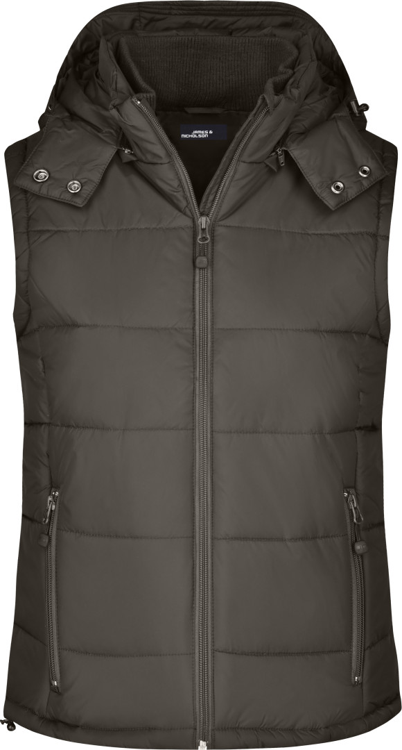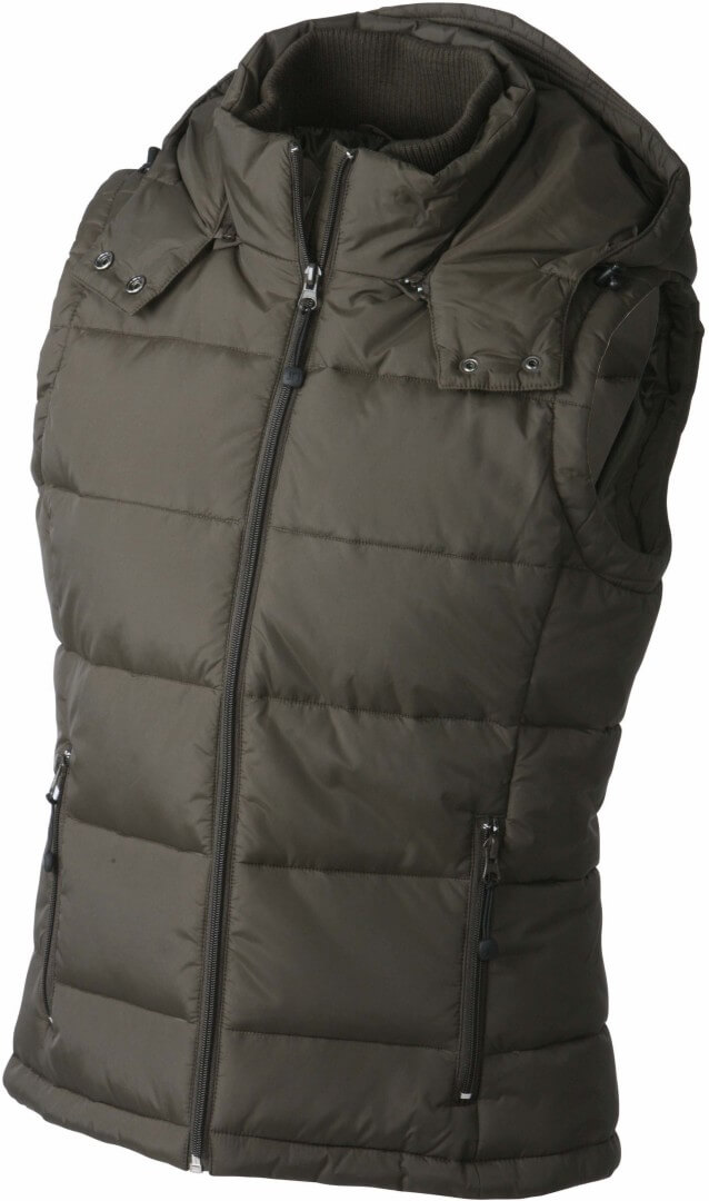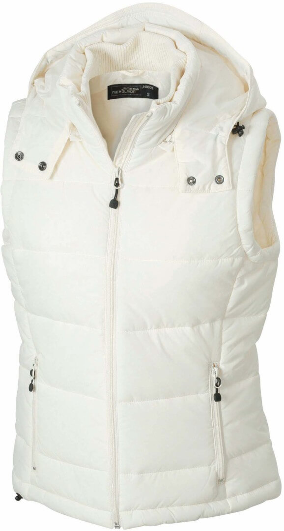 vonkajšia vrstva: 100% polyamid, prostredná vrstva: 100% polyester vesta matného vzhľadu, 2 predné vrecká, náprsné vrecko, vnútorné vrecko na mobil, odnímateľnú kapucňu a zips v podšívke, na leme a kapucni je sťahovacia šnúrka so zarážkami, z materiálu, ktorý je odolný voči vetru a vode (600mm)