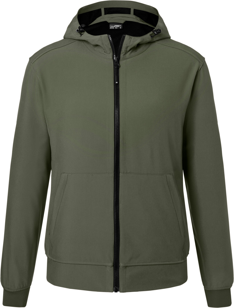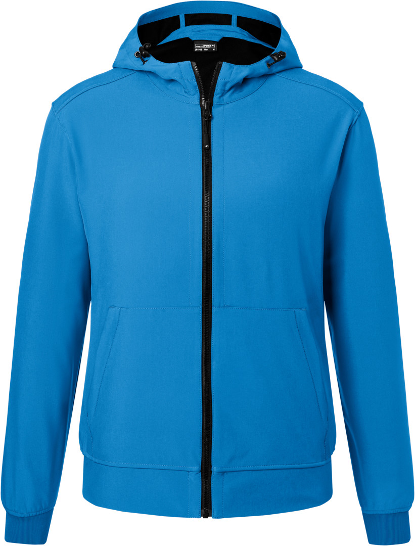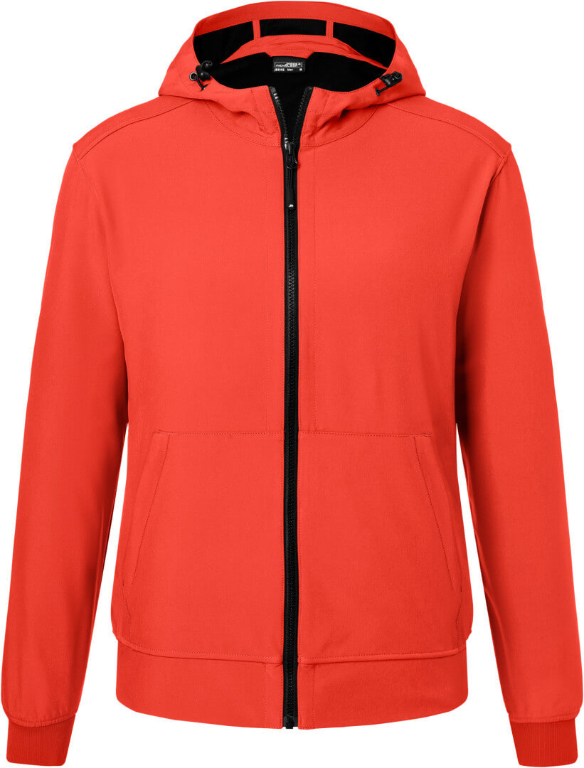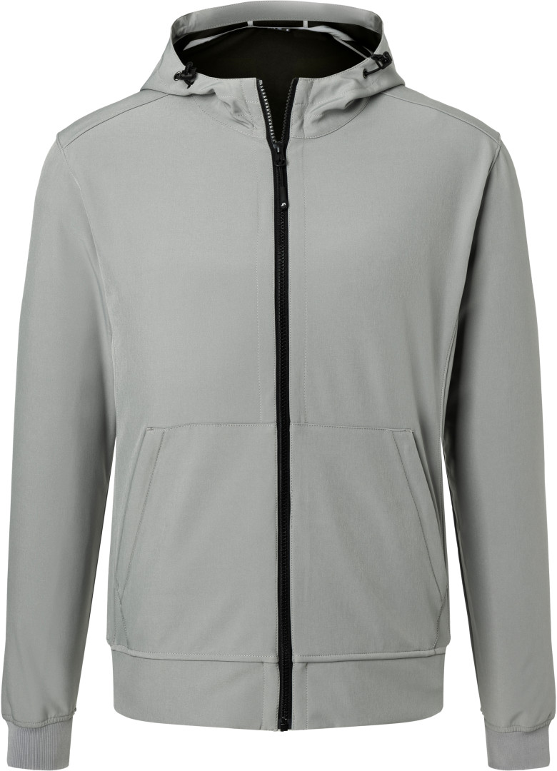 260g / m², 94% polyester, 6% elastan 2 vrstvový softshell materiál s kontrastnou farbou vnútornej strany sieťovaného vzhľadu, nastaviteľná kapucňa s reguláciou priemeru, YKK zipsy, nasadená klokanie vrecko so zipsom, vnútorné vrecko, elastická šnúrka