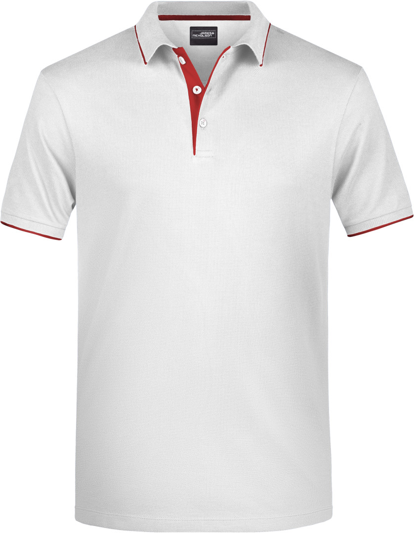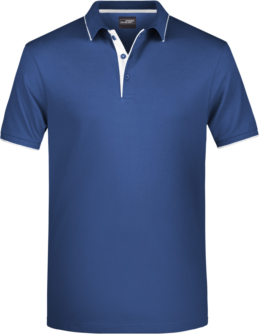 240g/m², 100% česaná bavlna predpraná proti zrazeniu, pletený límec a manžety s kontrastnými pásikmi, kontrastná vnútorná léga, 4 gombíky tón v tóne, postranné rozparky