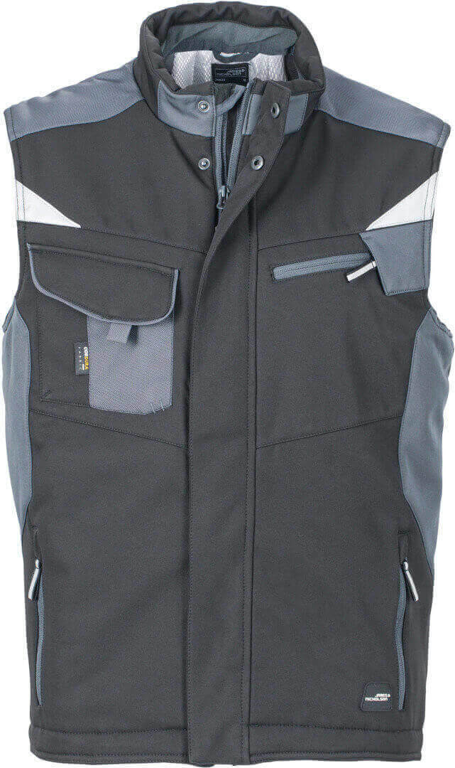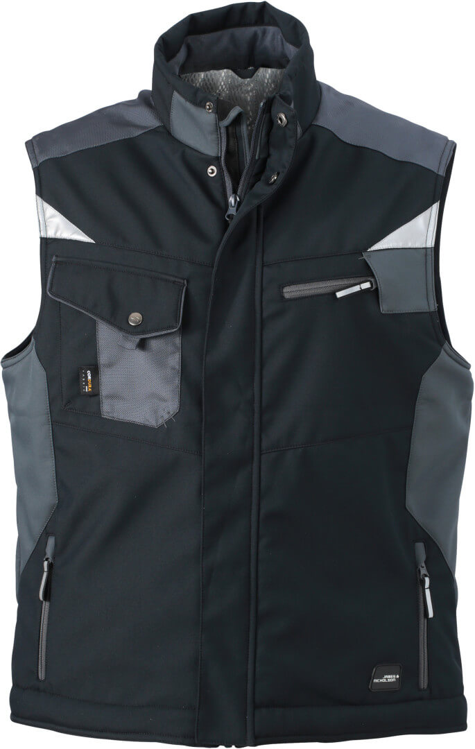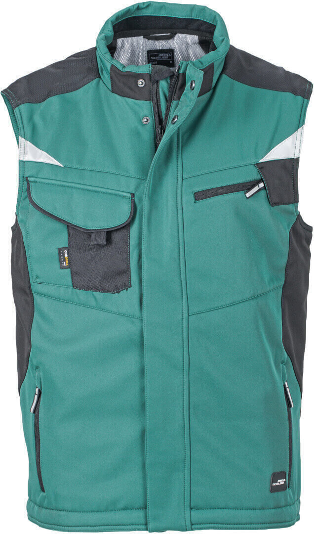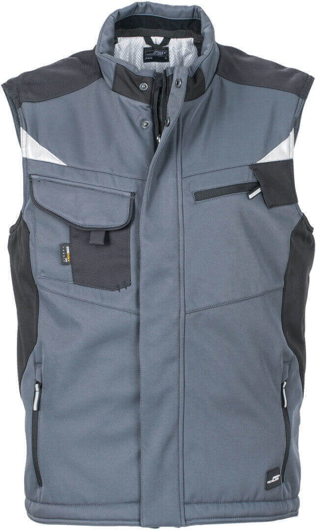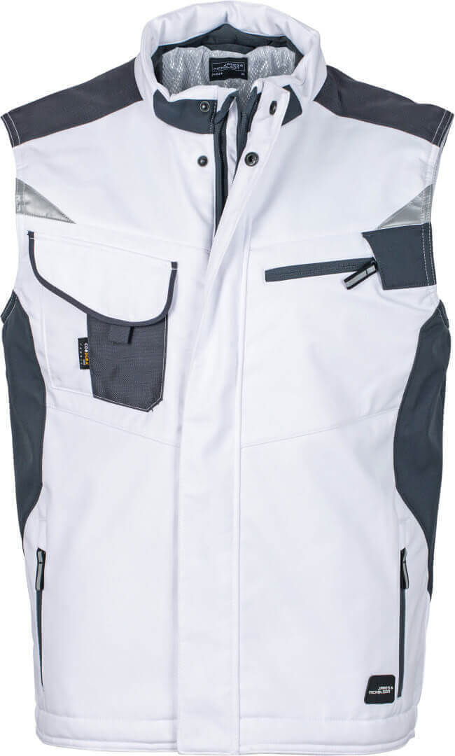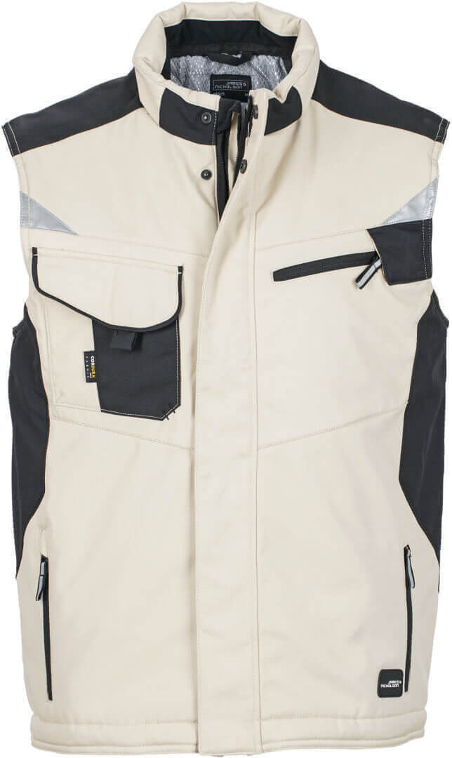 stojačik, vystužené ramenné časti, krytý predný zips, reflexné prvky, bočné vrecká na zips, náprsné vrecko, vnútorné vrecko a vrecko na mobilný telefón, vnútro goliera z mäkkého materiálu, priedušný materiál (2.000g / m² / 24h), ktorý je odolný voči vetru a vode (2.000 mm)