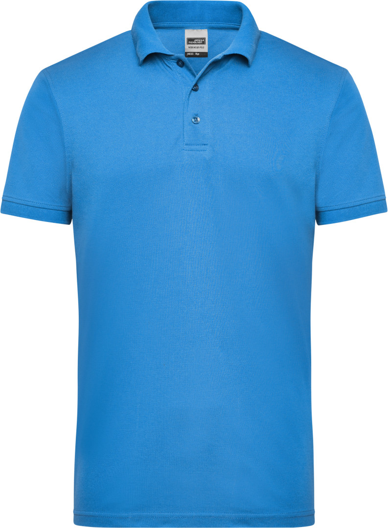 200g / m², 50% bavlna, 50% polyester pletené manžety, pletený golier, léga s 3 gombíkmi, materiál udržujúci svoj tvar, lemovka okolo krku, možno prať na 60 ° a sušiť v sušičke