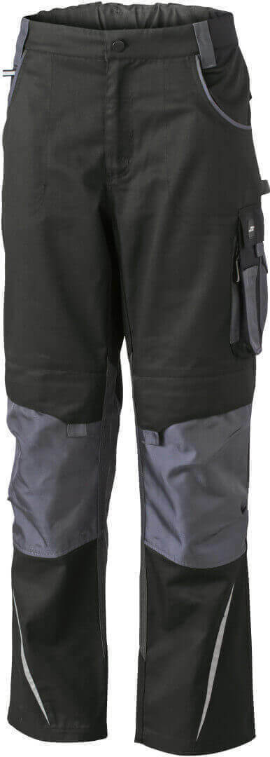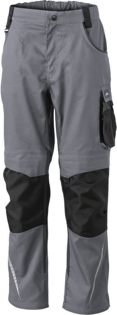 260g / m², 65% polyester, 35% bavlna, podsádka: 100% polyamid Cordura® robustný látka, elastický pásik s pútkami na pásku, 2 vrecká so zipsom, s vreckom na kolenách na polstrovanie zosilnenú materiálom Cordura®, rôzne prestrihnuté vrecká a vrecká na náradie, reflexné prvky vpredu a vzadu, vhodný vankúš na kolená výr. č. JN823