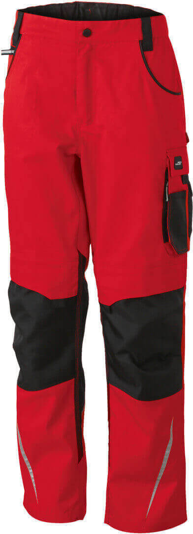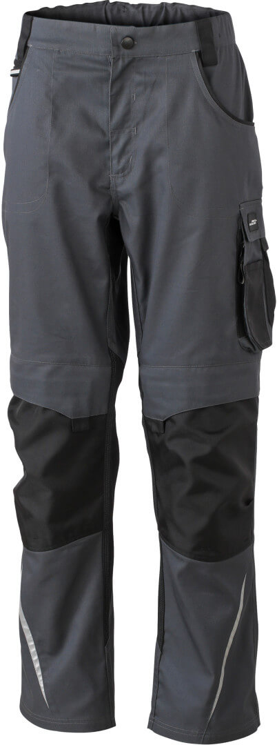 260g / m², 65% polyester, 35% bavlna, lemovanie: 100 polyamid Cordura® odolný materiál, niekoľko multifunkčných vreciek, vystužené švy, reflexné prvky a elastický pás s pútkami na opasok, v troch rôznych prevedeniach (krátke, stredné a dlhé nohavice)