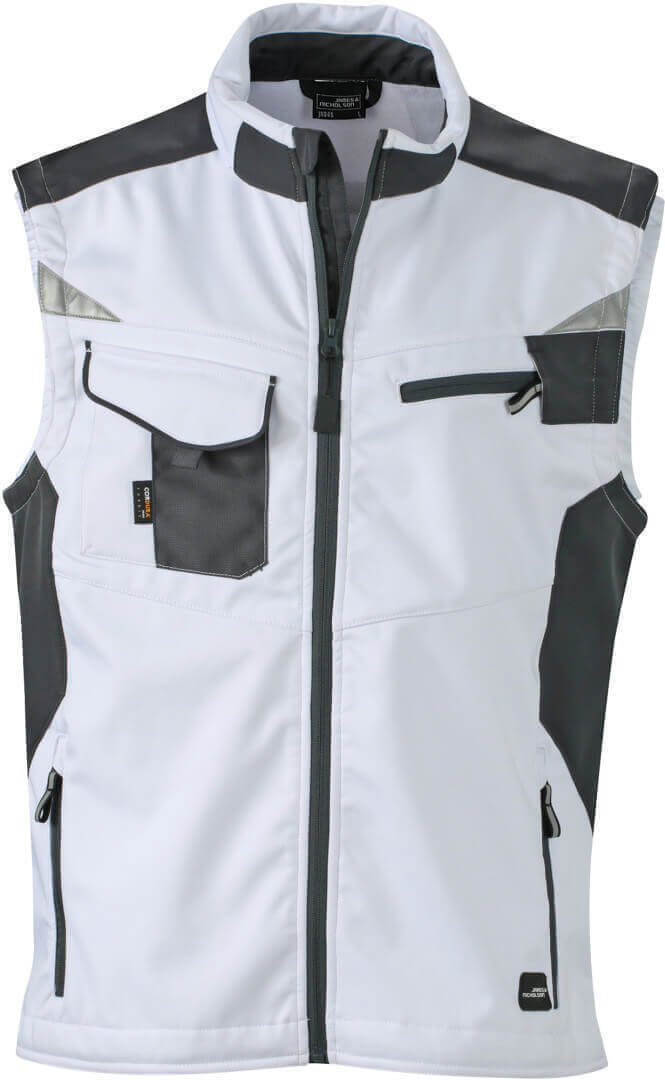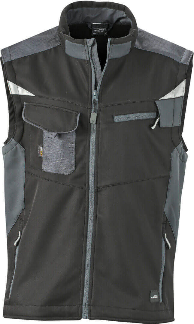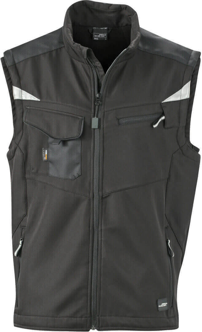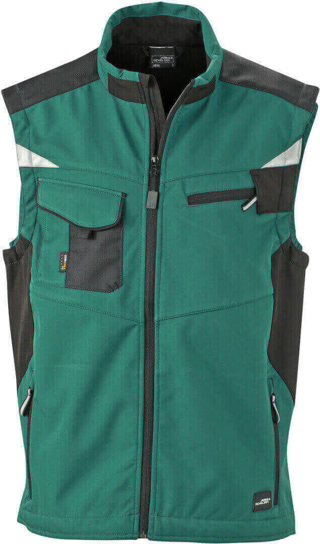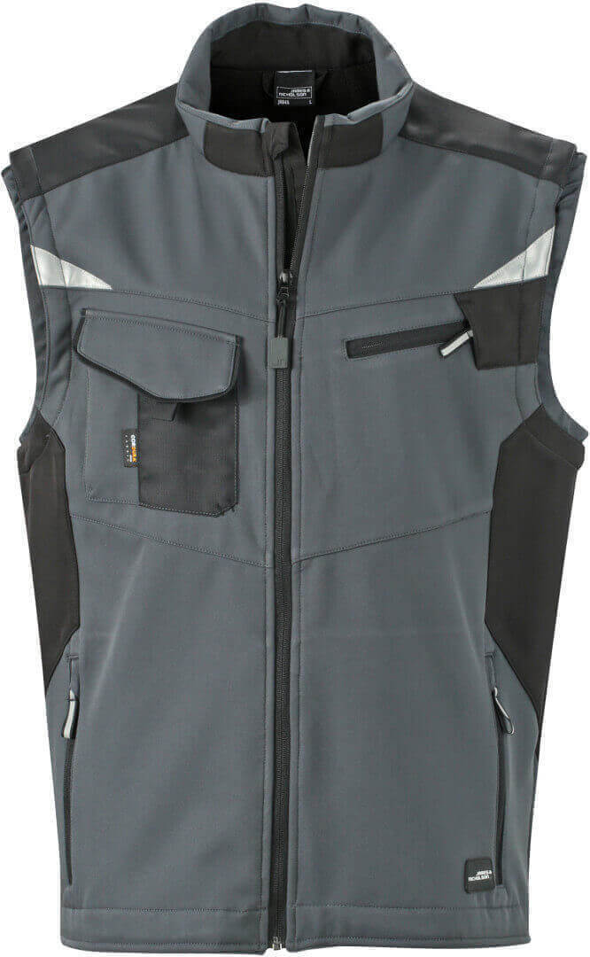 100% polyester stojačik, predný zips, vystužené ramenné švy, niekoľko multifunkčných vreciek, na chrbte a rukávoch reflexné prvky, vyrobená z priedušného materiálu (2.000g / m² / 24 h), ktorý je odolný voči vetru a vode (2.000mm)